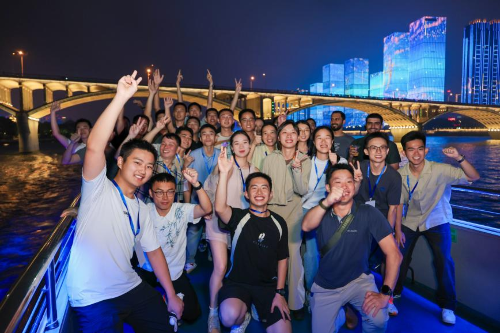 在夜游湘江的轮渡上