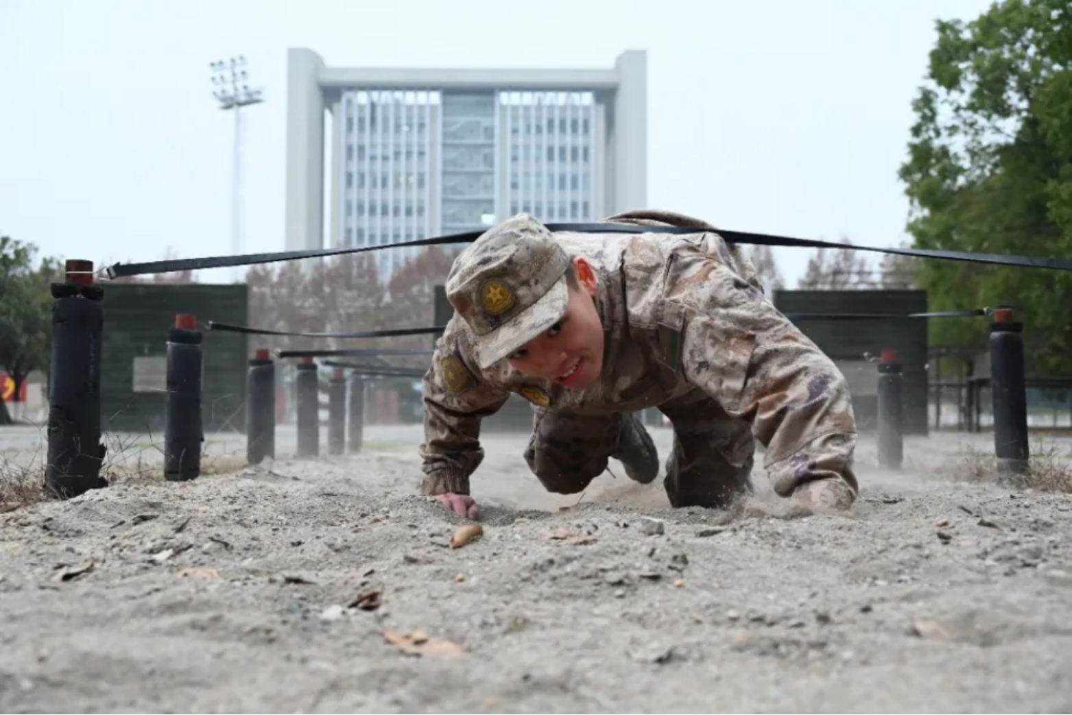 军事五项全能冠军卢嫔嫔教员在指导训练