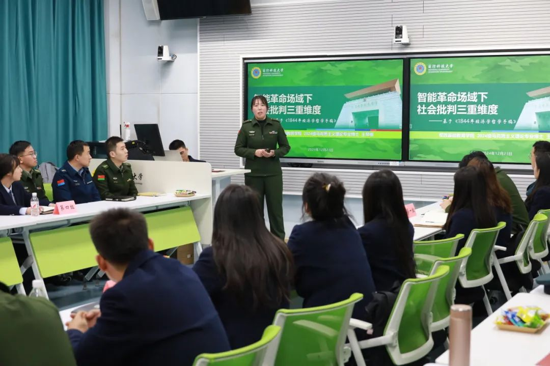在分享会上,两位学员代表结合研读马克思主义经典著作的体会,聚焦当代科技与社会发展中的重大问题,从不同角度进行了主题报告。