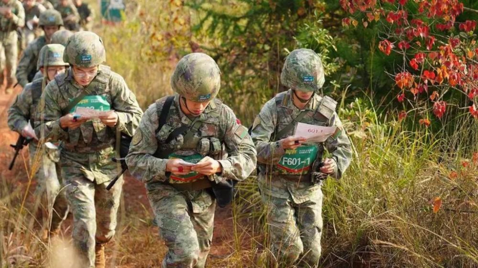 近日,2025年全军院校“强军杯”定向越野比赛在湖南长沙举办。比赛由中央军委训练管理部主办,国防科技大学、军事体育训练中心承办,设置小组接力、个人中距离、个人长距离和班组团队赛4个项目,来自全军23个院校、基地的31支代表队参加比赛。图为参赛选手按图行进。(杨熙莹、史绍琪)
