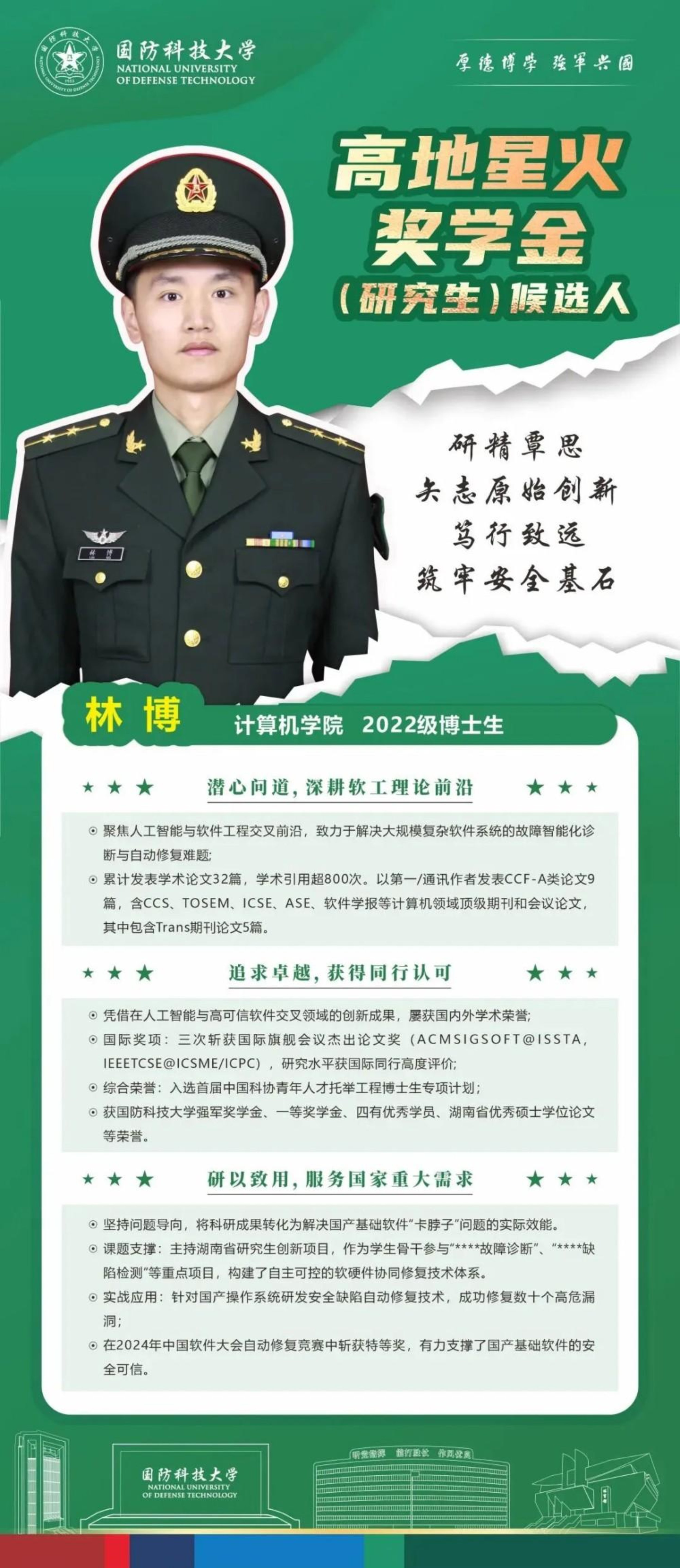 2025年国防科技大学高地星火奖学金