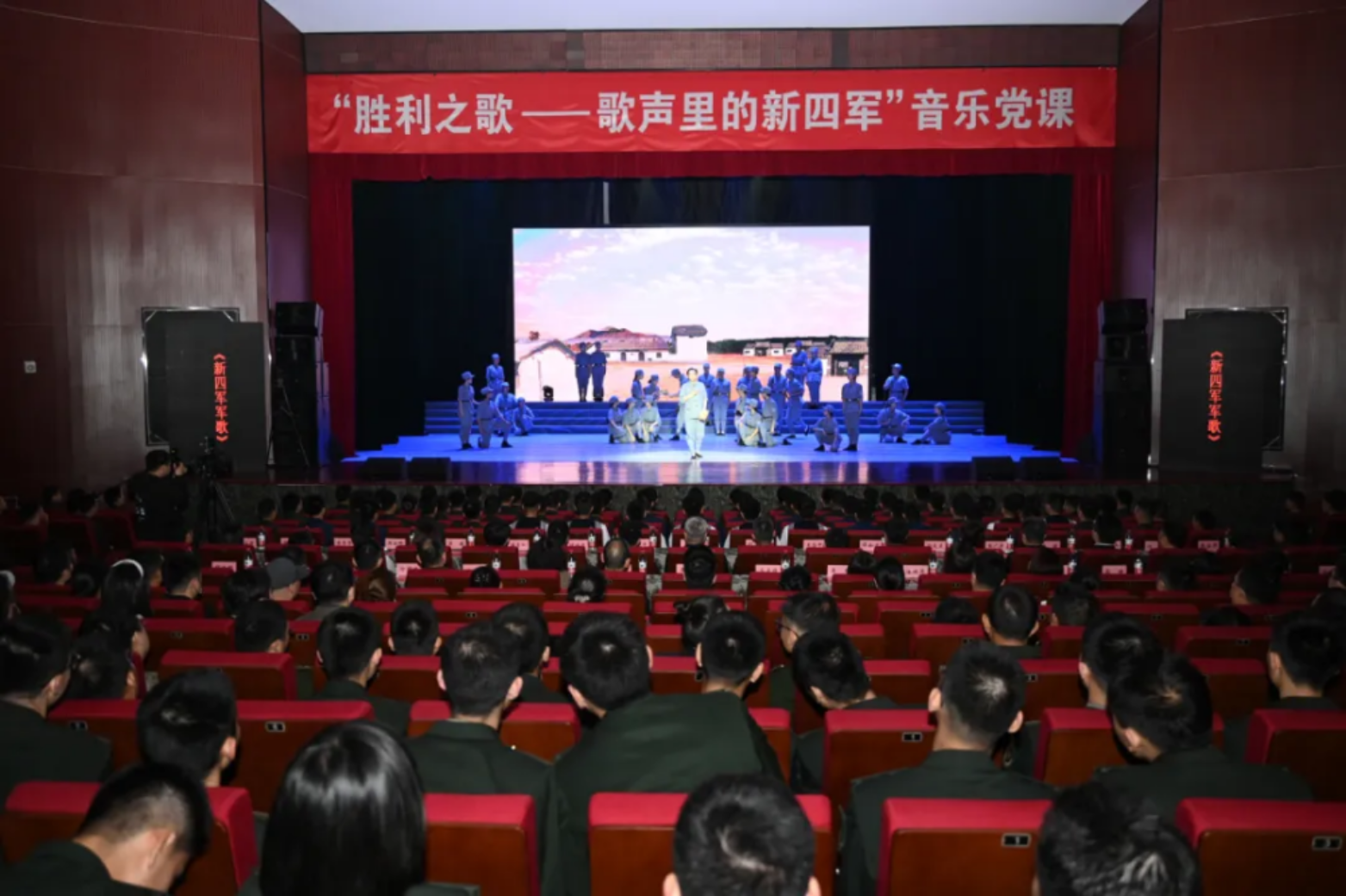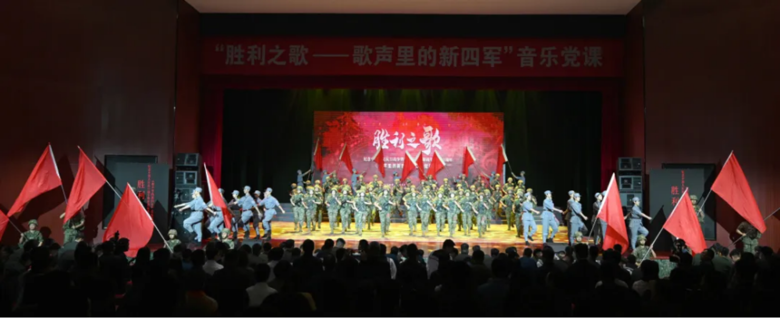 为弘扬伟大抗战精神,纪念中国人民抗日战争暨世界反法西斯战争胜利80周年,同时,创新开展“文艺思政”,探索启智润心育人新范式,近日,国防科技大学外国语学院特别邀请新华报业传媒集团与南京师范大学师生来院,为官兵送上一堂共同策划创排的音乐党课《胜利之歌——歌声里的新四军》。此次演出也是该剧目启动巡回展演的首场演出。江苏省委党史工办、省档案馆、省文旅厅、宣传部相关处室负责同志,南京市委宣传部、新华报业传媒集团和兄弟单位特邀嘉宾,南京师范大学和学院主要领导参加活动。