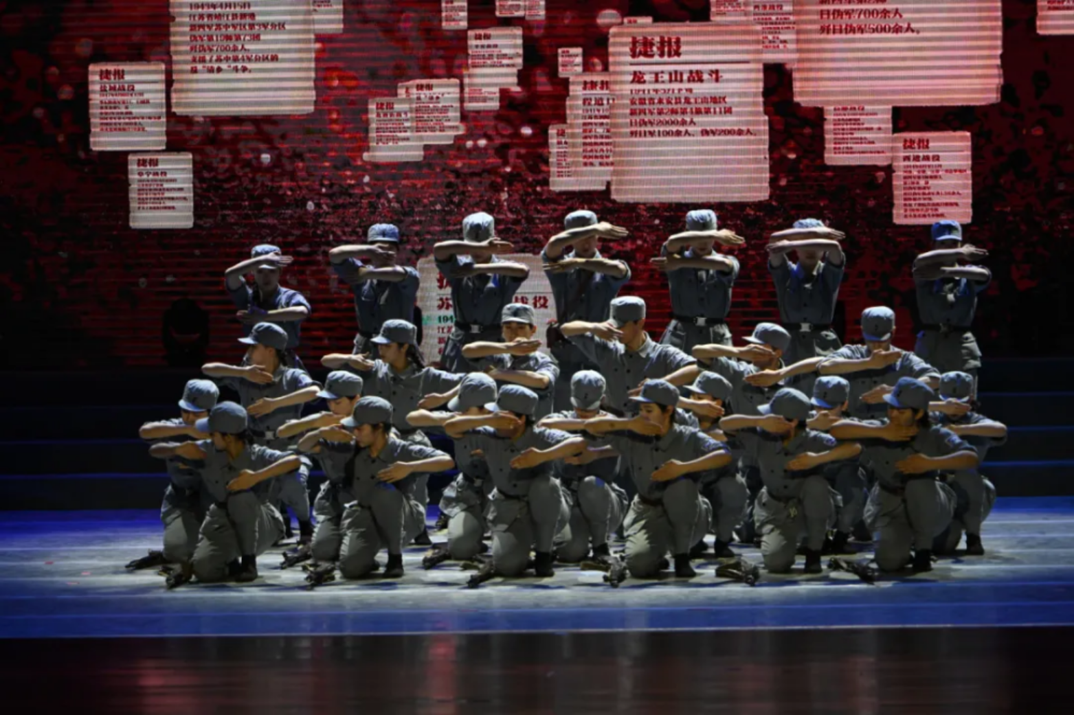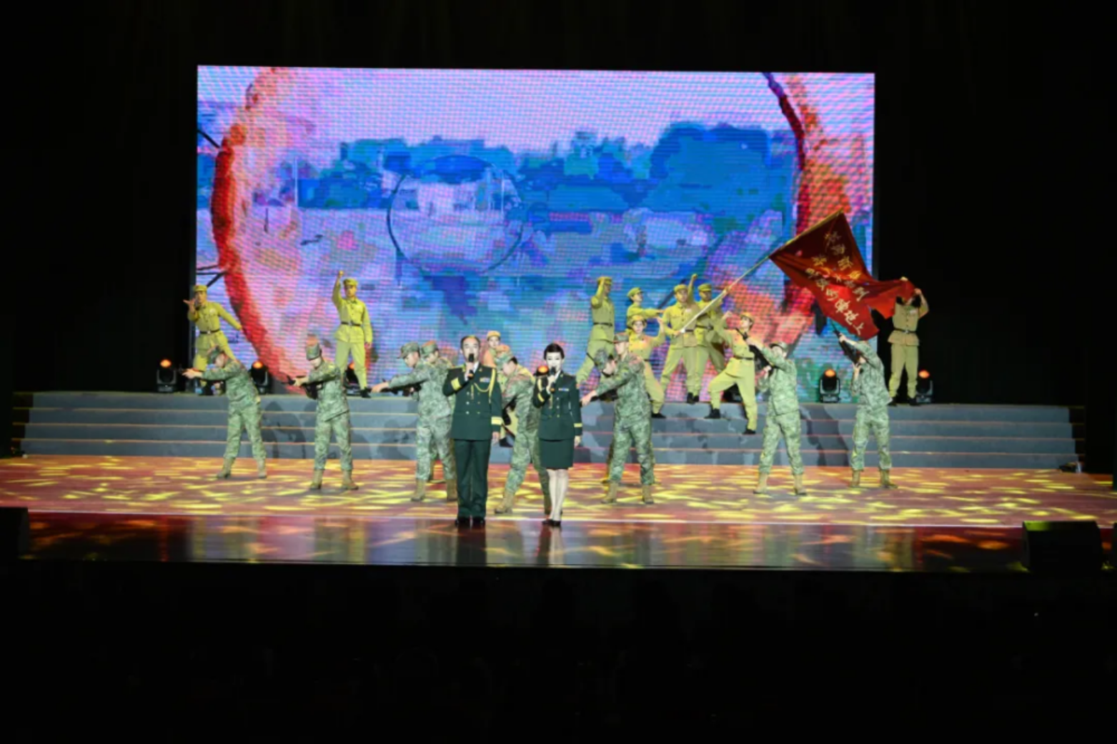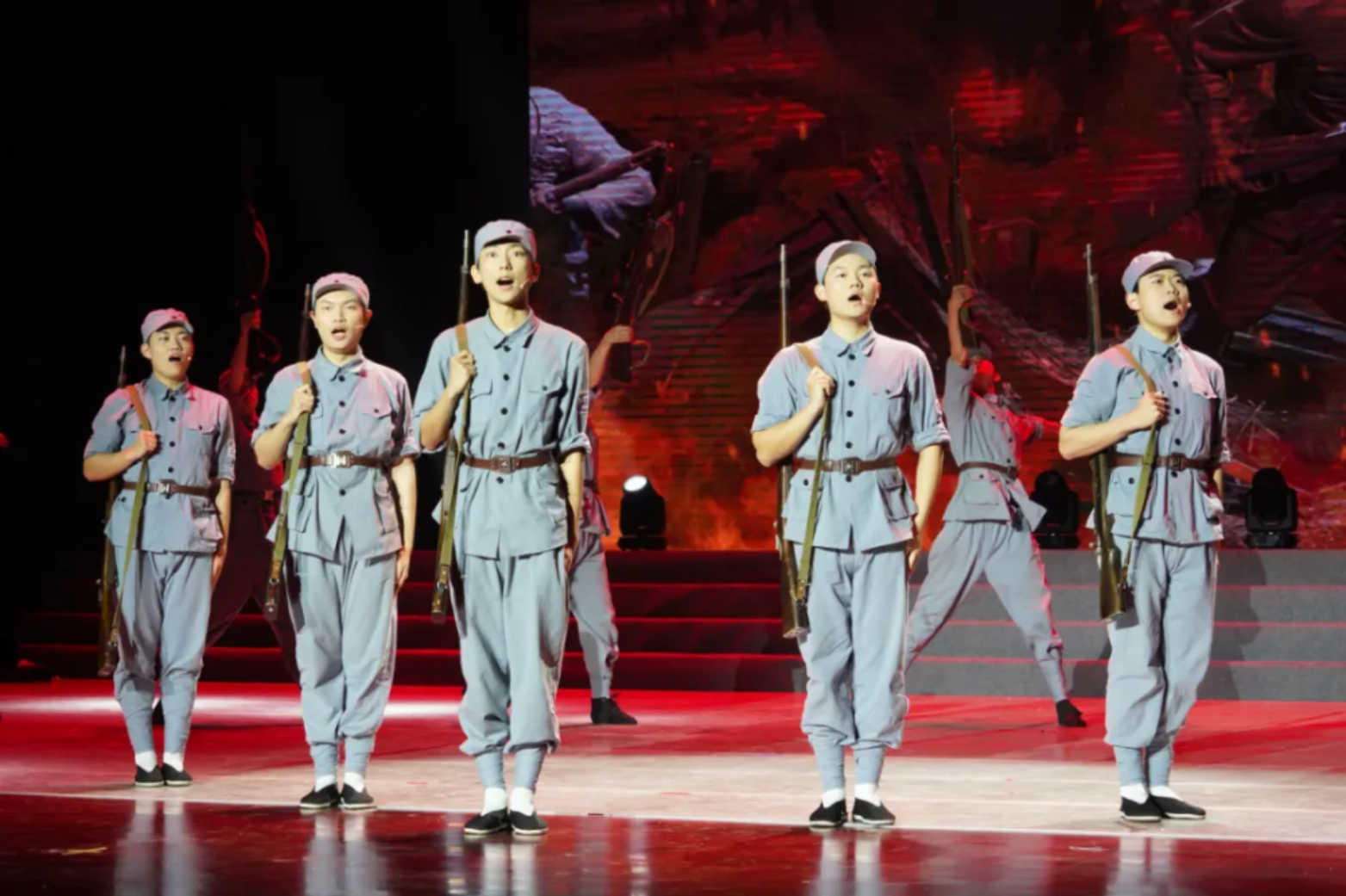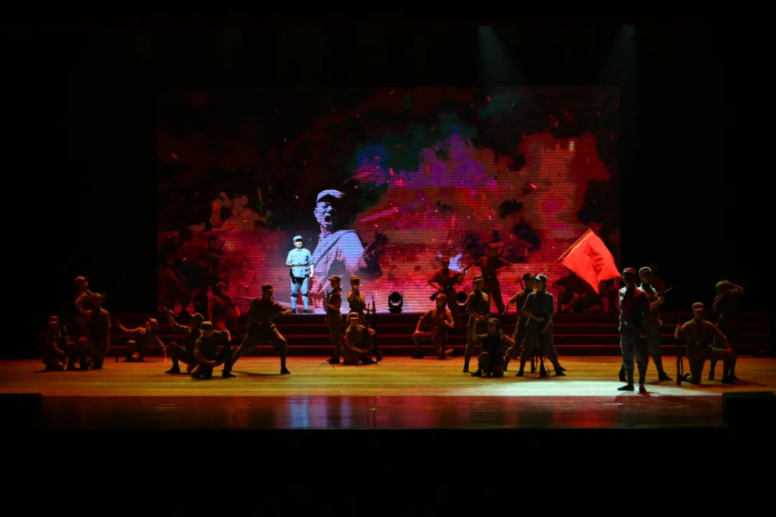 一面面红旗在演员们手中传递