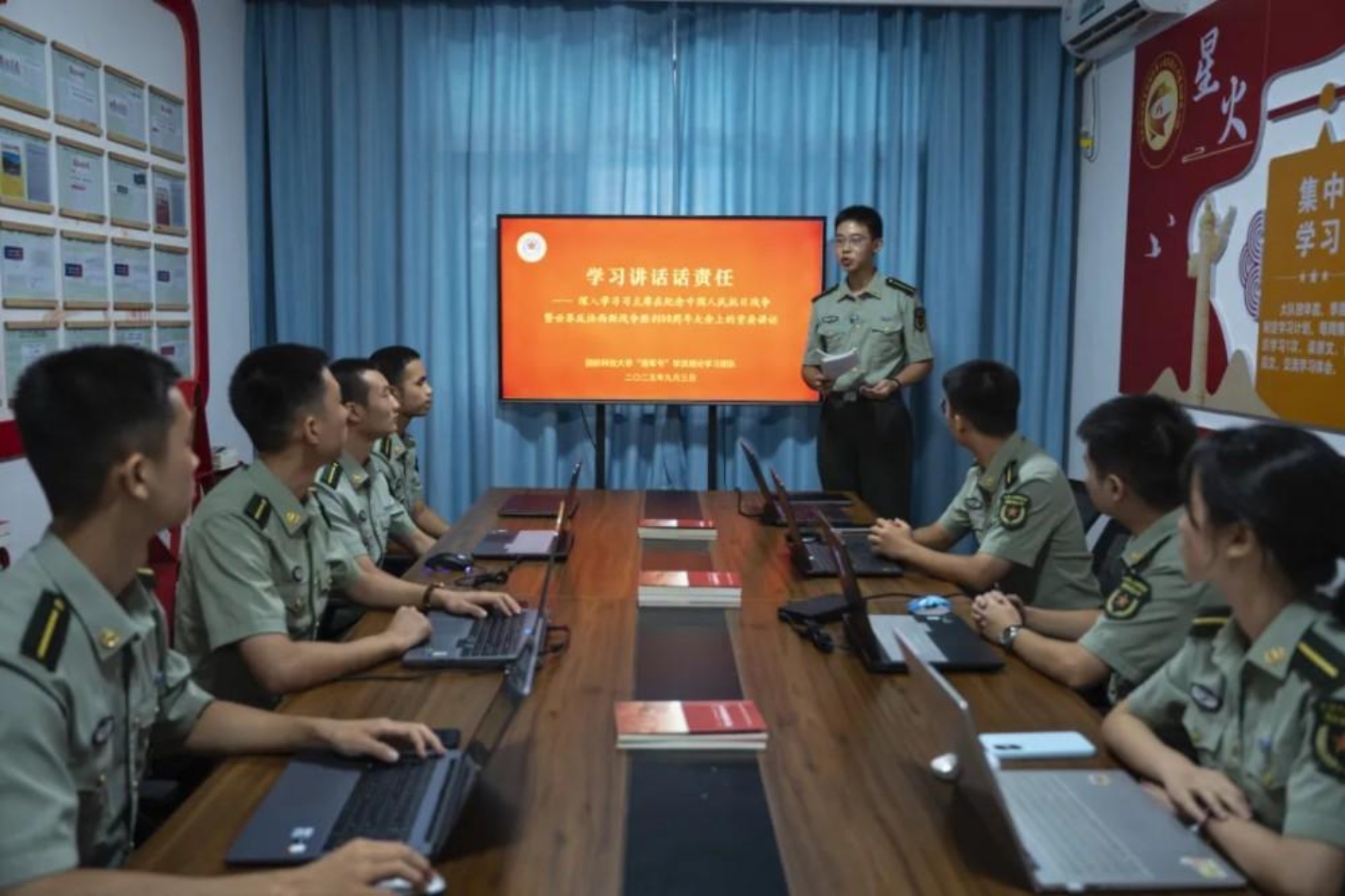 深夜,大队理论研究室灯火通明。学员苟轩恺和几名理论骨干正热烈讨论如何讲好“哈军工”故事。“精神是血脉,也是源头。”苟轩恺目光炯炯,“我们就从‘哈军工’人那‘六个始终’学起,看先辈如何践行使命。”他们扎进史料,在泛黄书页中拼接历史,屏幕上的思维导图趋于复杂,心中的图景却越发清晰。