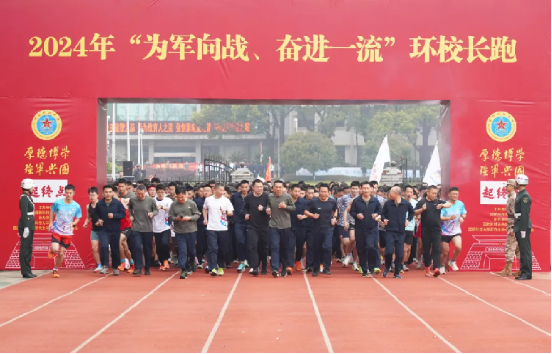 3月24日上午9点,随着清脆的发令枪声响起,国防科大2024年“为军向战、奋进一流”环校长跑正式开跑。