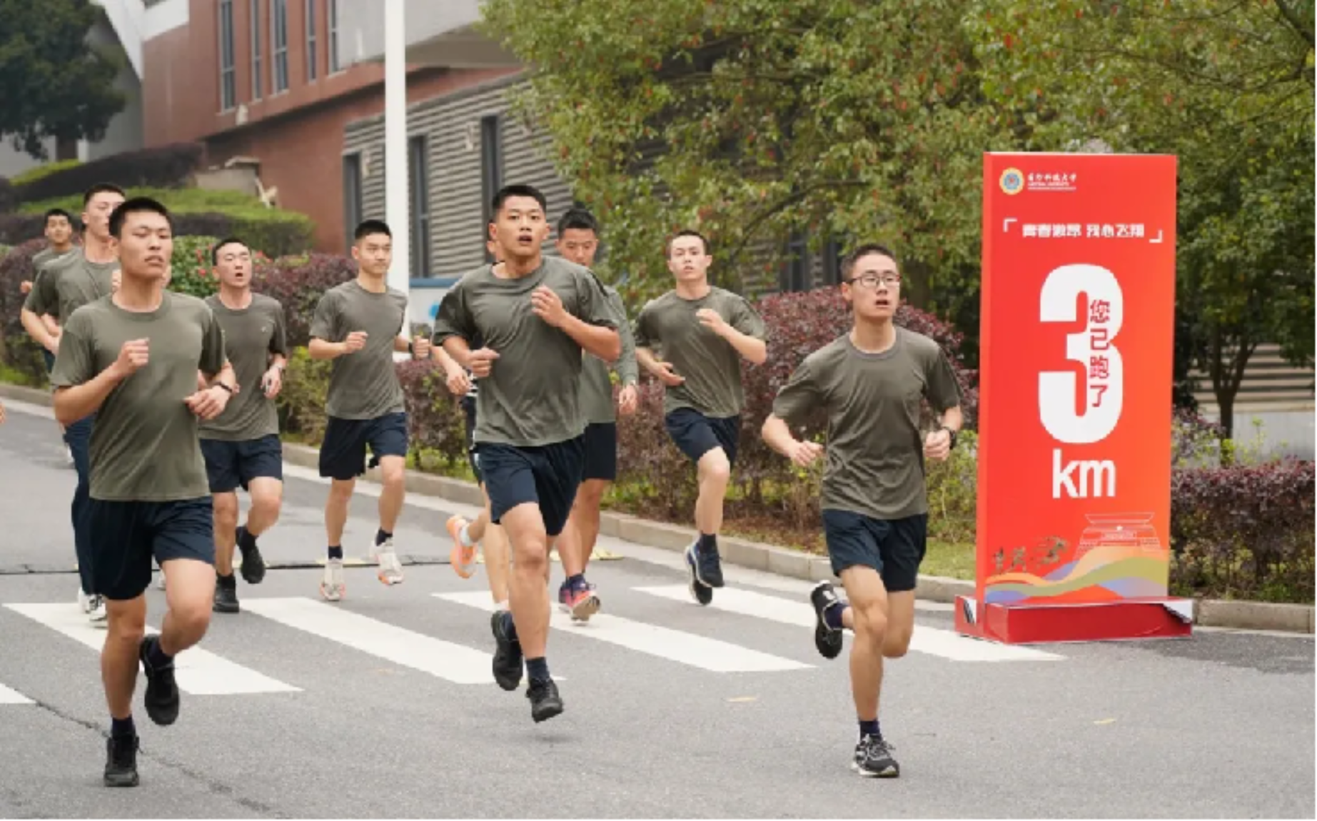 长沙校区一、三、四号院,电子对抗学院同步开跑,西安校区于3月22日开跑,上万名师生员工参赛。校长黎湘、政委傅爱国在长沙校区三号院出席领跑。