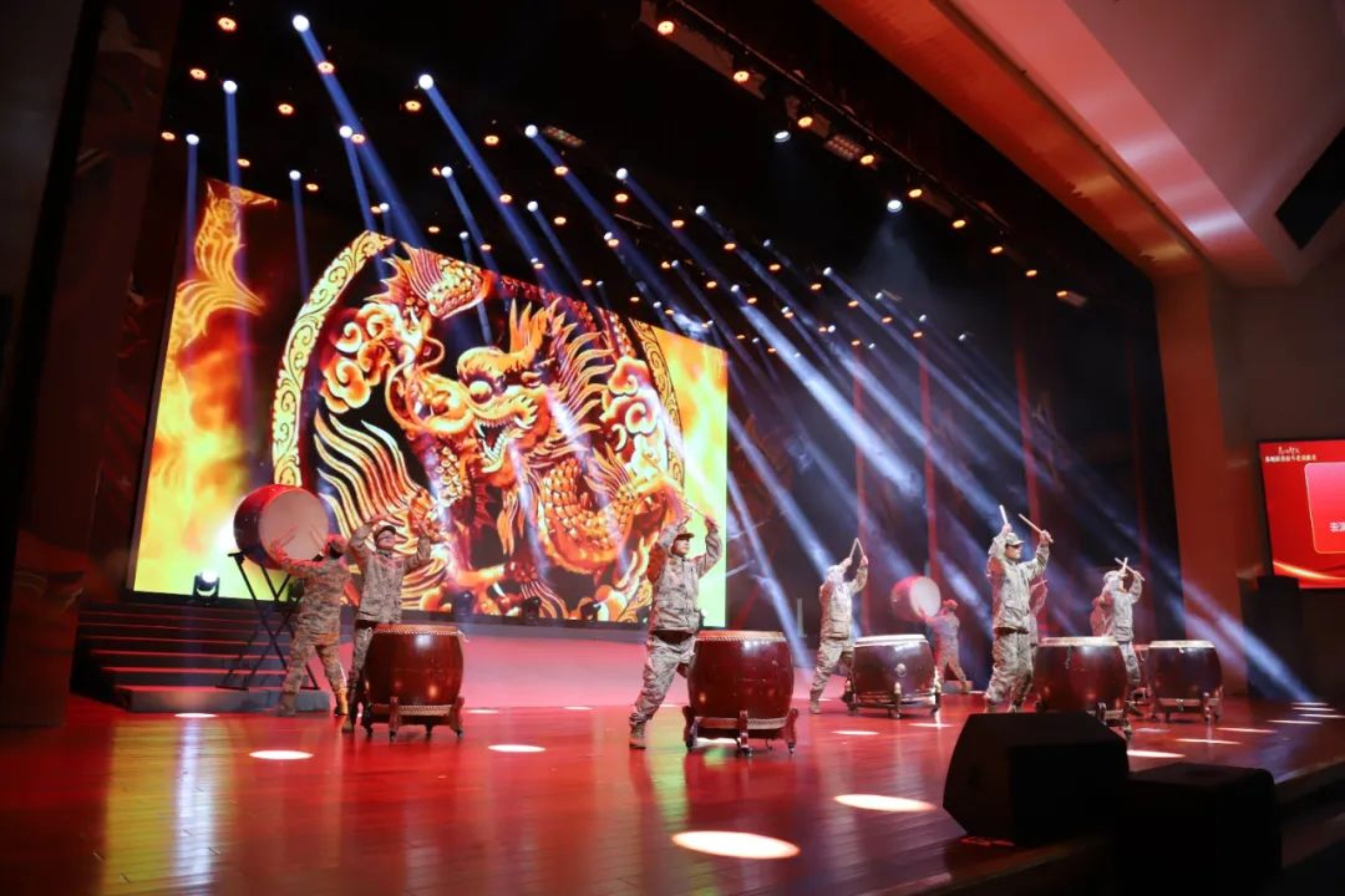 陕北民歌对唱《拥军秧歌》唱出了广大官兵铁心向党、强军胜战的忠诚担当。舞蹈《智戎先锋》充分展现了基地人论战研战、闯创一流的蓬勃动力。