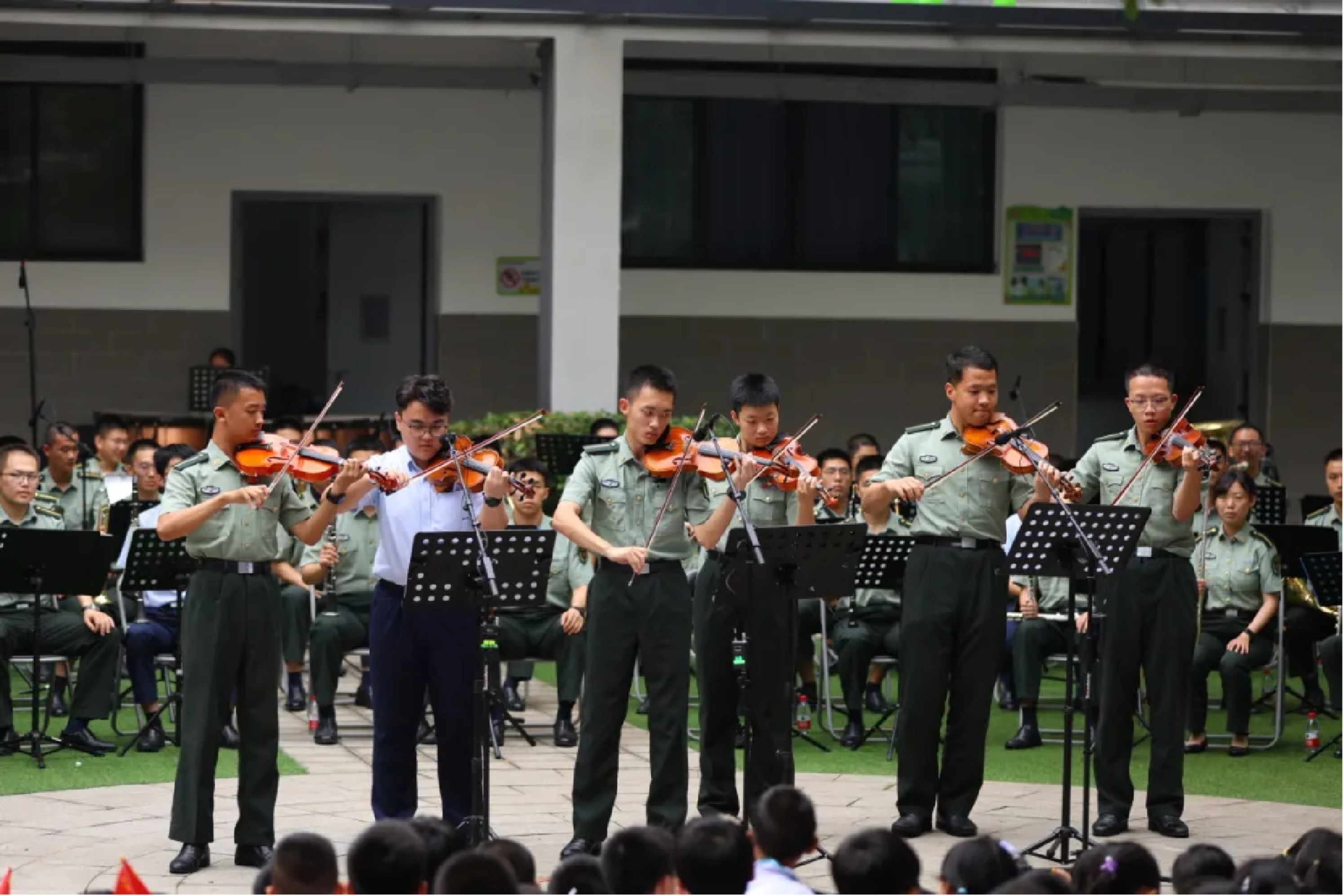 近日,国防科大军乐团走进八一小学