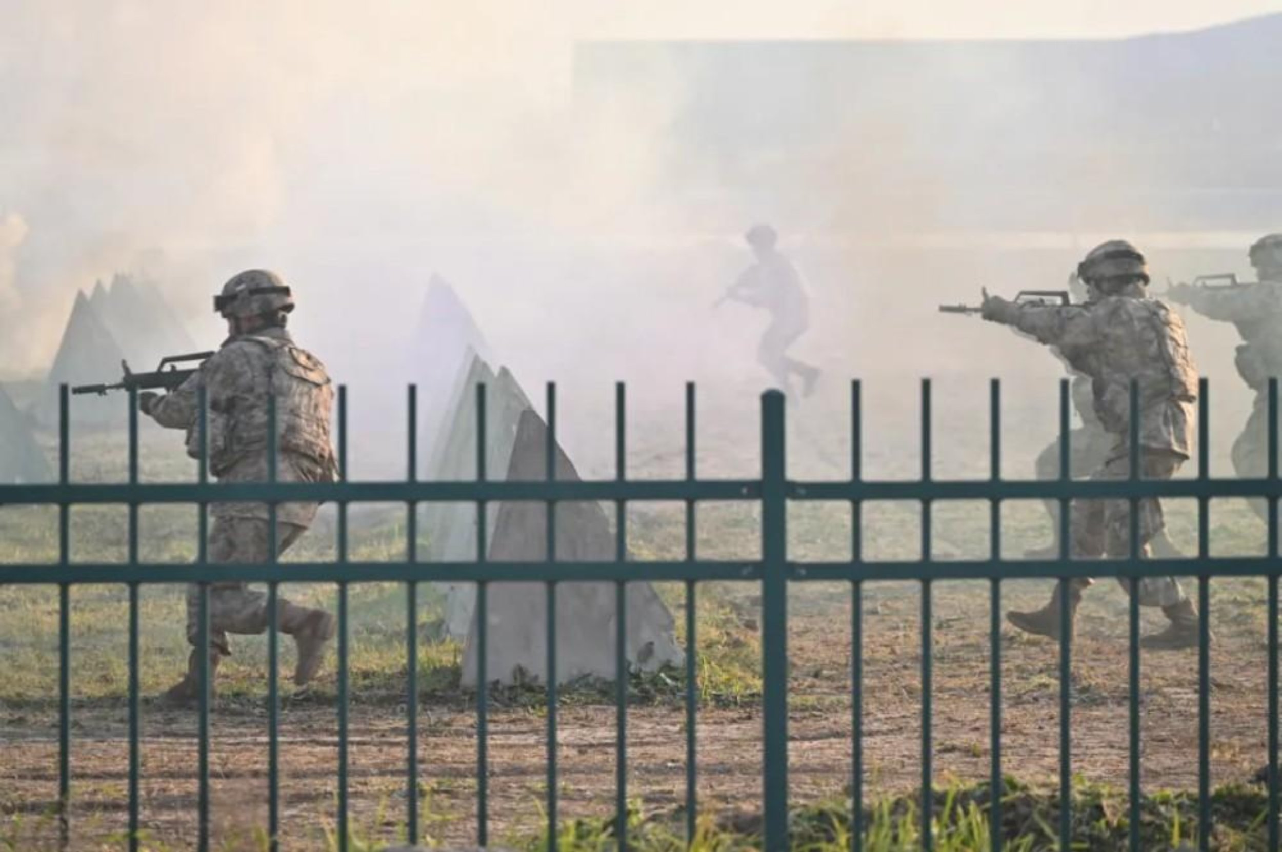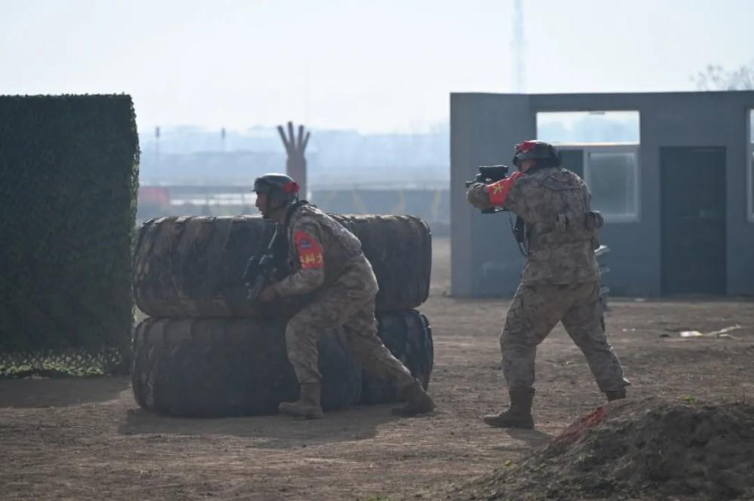 进入火药味最浓的“班组对抗”环节,现场气氛瞬间凝固,剑拔弩张。“全班注意,一组防御左翼,二组突入中路,三组从右翼迂回包抄,跟我来!”队员在班长的带领下,严格执行既定战术,以迅猛的攻势撕开“敌人”的防守,打出了科大学员顽强的战斗作风。