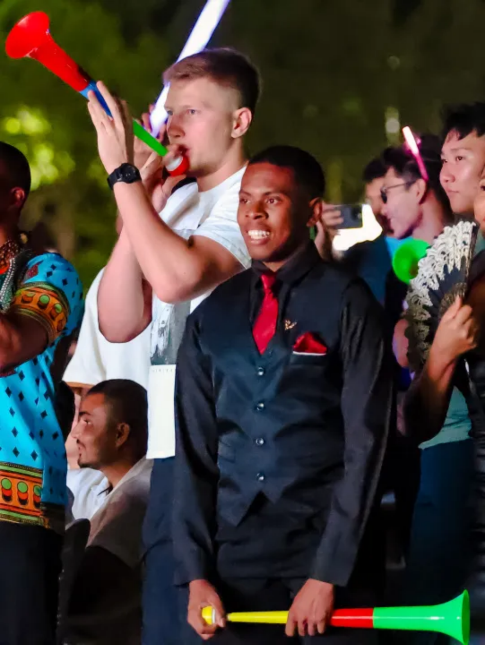 当聚光灯穿透夜色,学员们便是这方舞台最耀眼的主角!来自不同国家的学生积极展示本国文化,成为亮丽的文化使者。