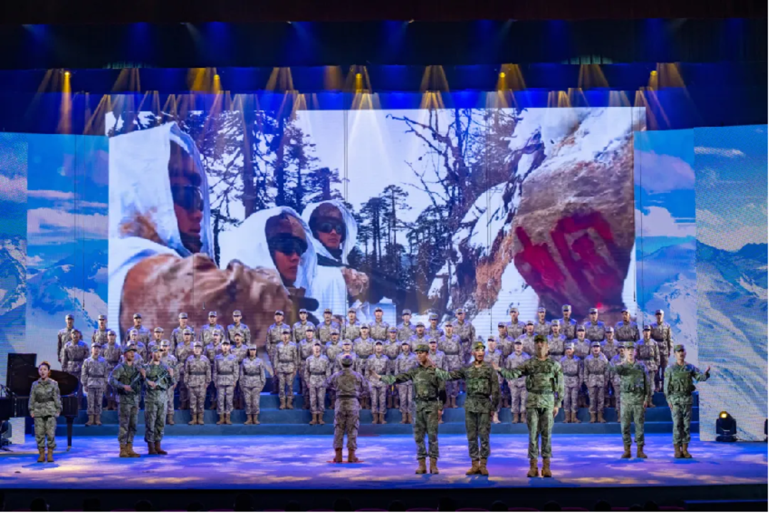 伴随着学校军人合唱团带来的歌曲
