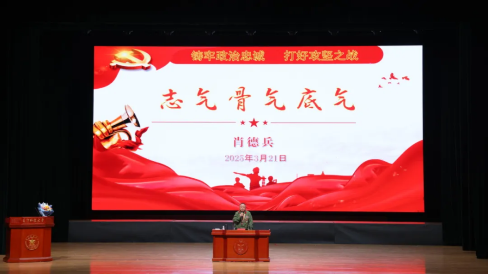 为深化拓展大思政育人格局,推动“铸牢政治忠诚、打好攻坚之战”深化教育实践活动走深走实,进一步引导官兵树牢打仗意识,挺膺担当作为,近日,国防科技大学气象海洋学院举办专场讲座,邀请功勋老兵肖德兵为学院全体师生员工分享军旅感悟。