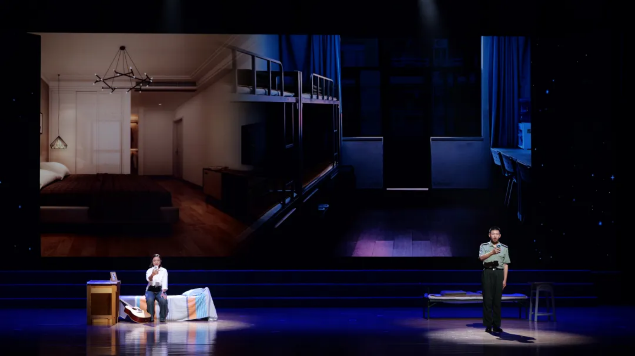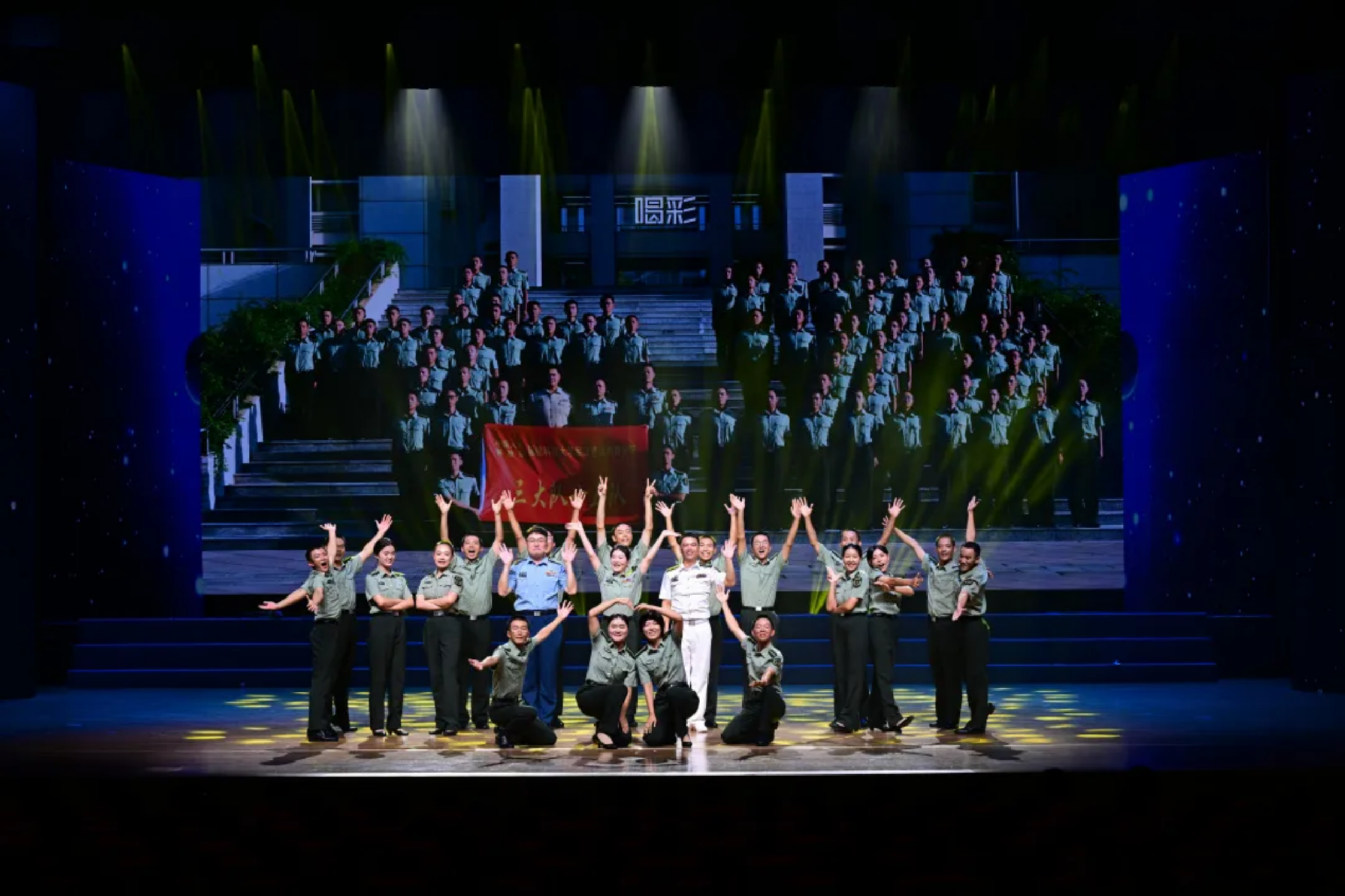 器乐表演《军校一日》的舞台上