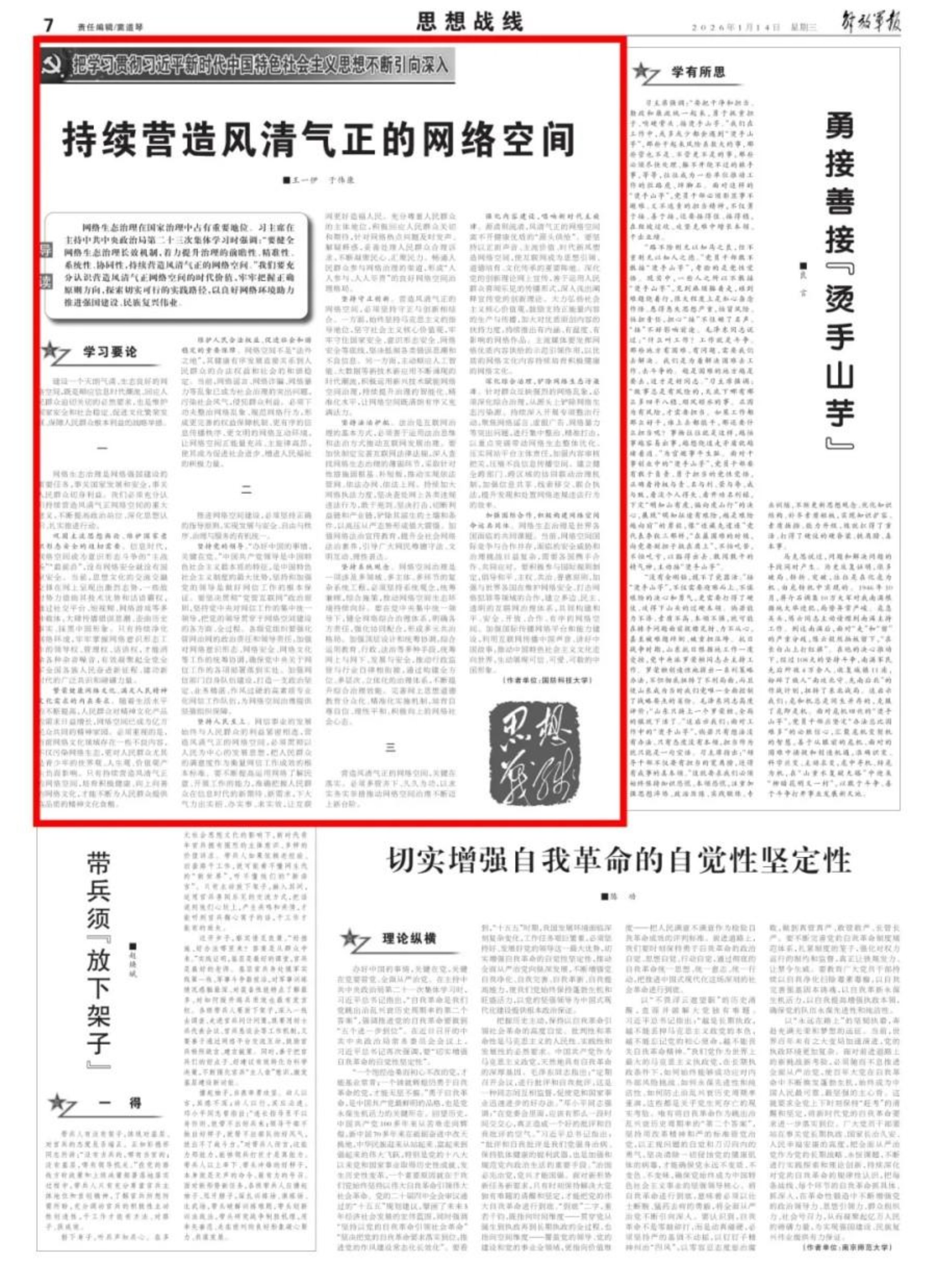 《解放军报》刊发 | 持续营造风清气正的网络空间