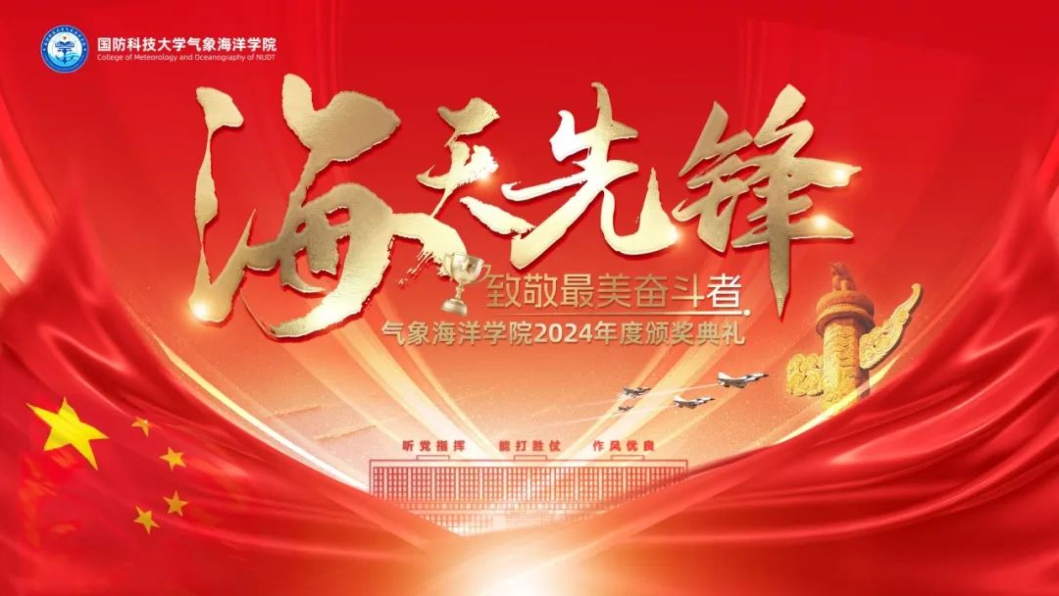 近日,国防科技大学气象海洋学院在长沙校区三号院音乐厅举行2024年度“海天先锋——致敬最美奋斗者”颁奖典礼。