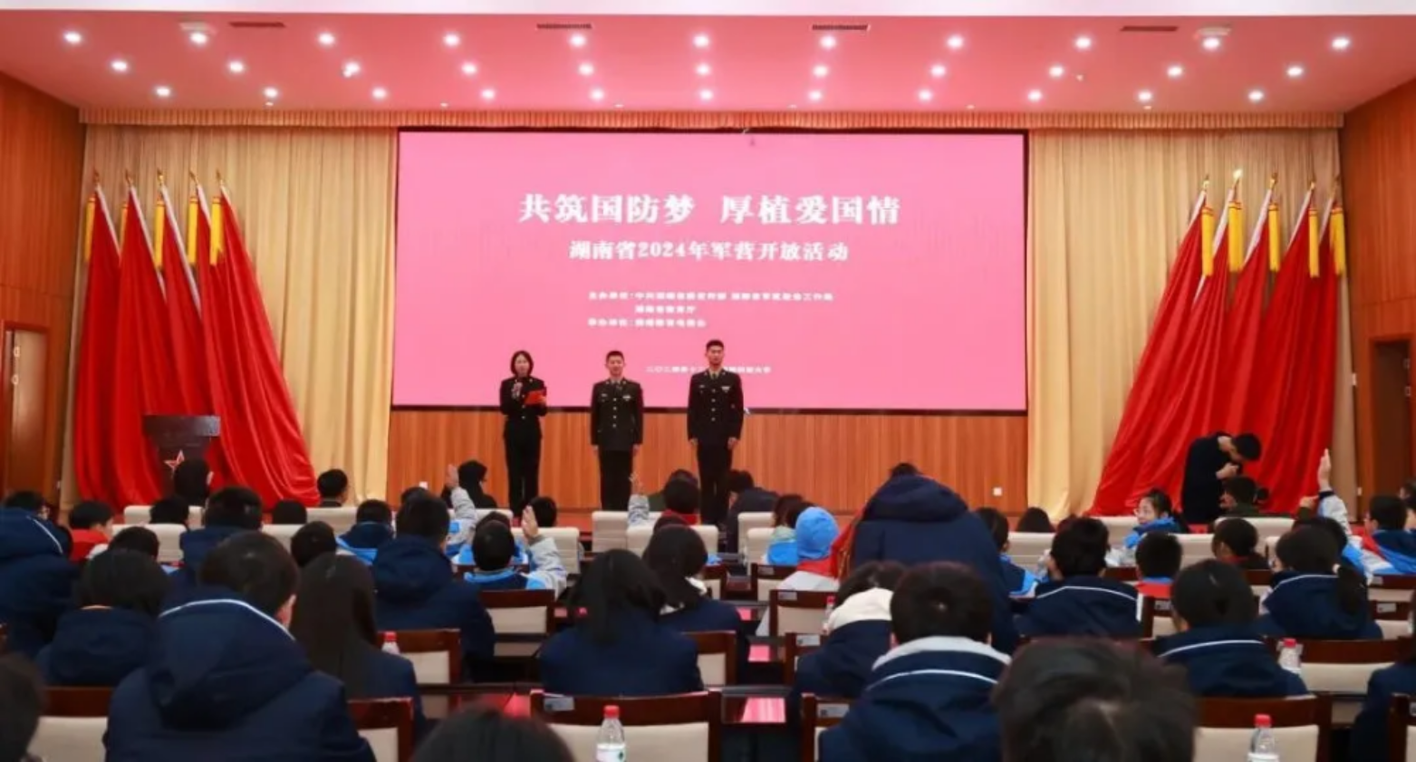 为加强中小学国防教育建设,培育学生的爱国情怀,近日,在国防科技大学举行了以“共筑国防梦,厚植爱国情”为主题的军营开放活动。该活动由中共湖南省委宣传部、湖南省军区政治工作局和湖南省教育厅主办,湖南教育电视台承办。来自周南梅溪湖中学和中南大学第二附属小学的师生们走进科大,参观校史馆和学员宿舍,观摩队列训练,并与学员们进行交流互动。