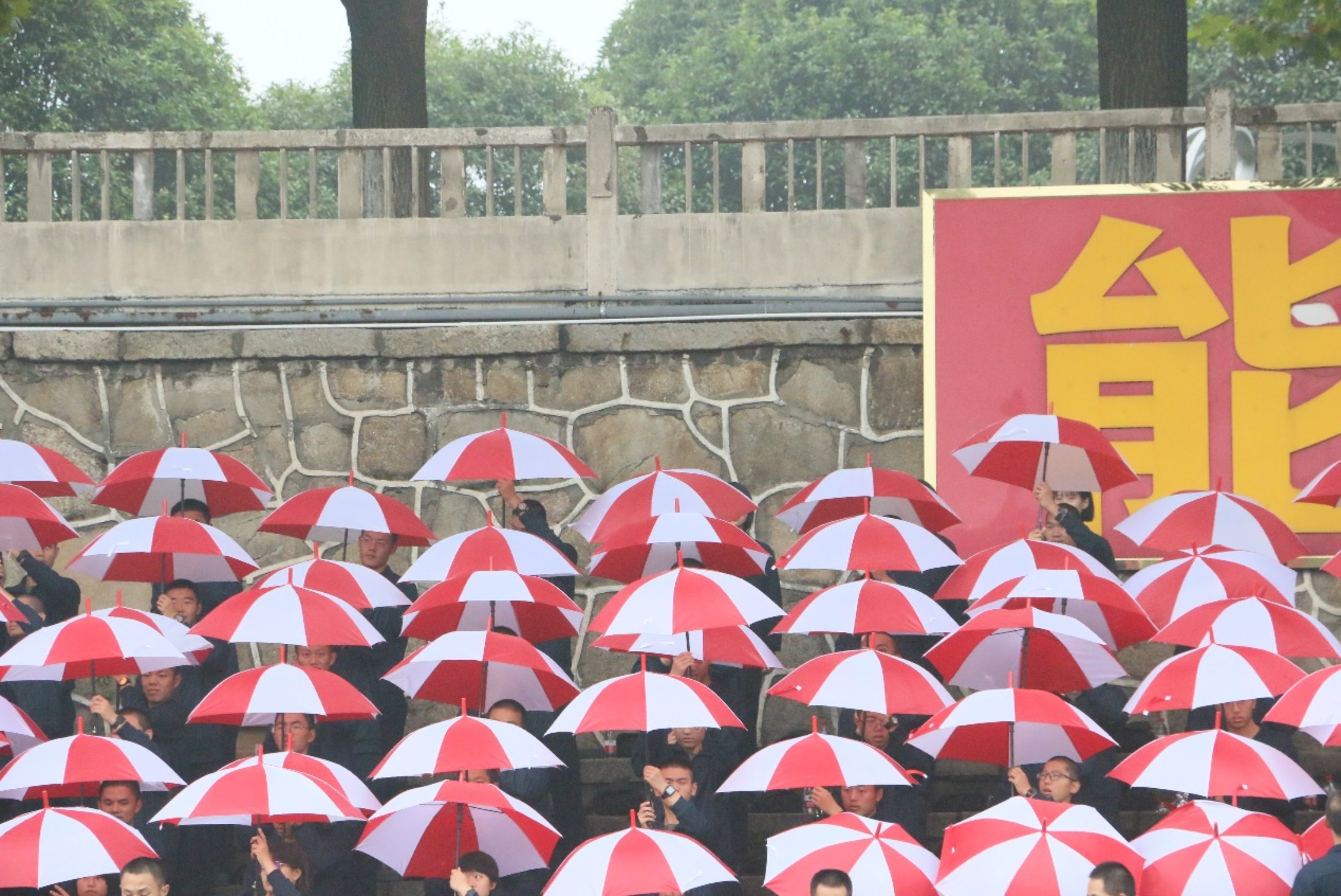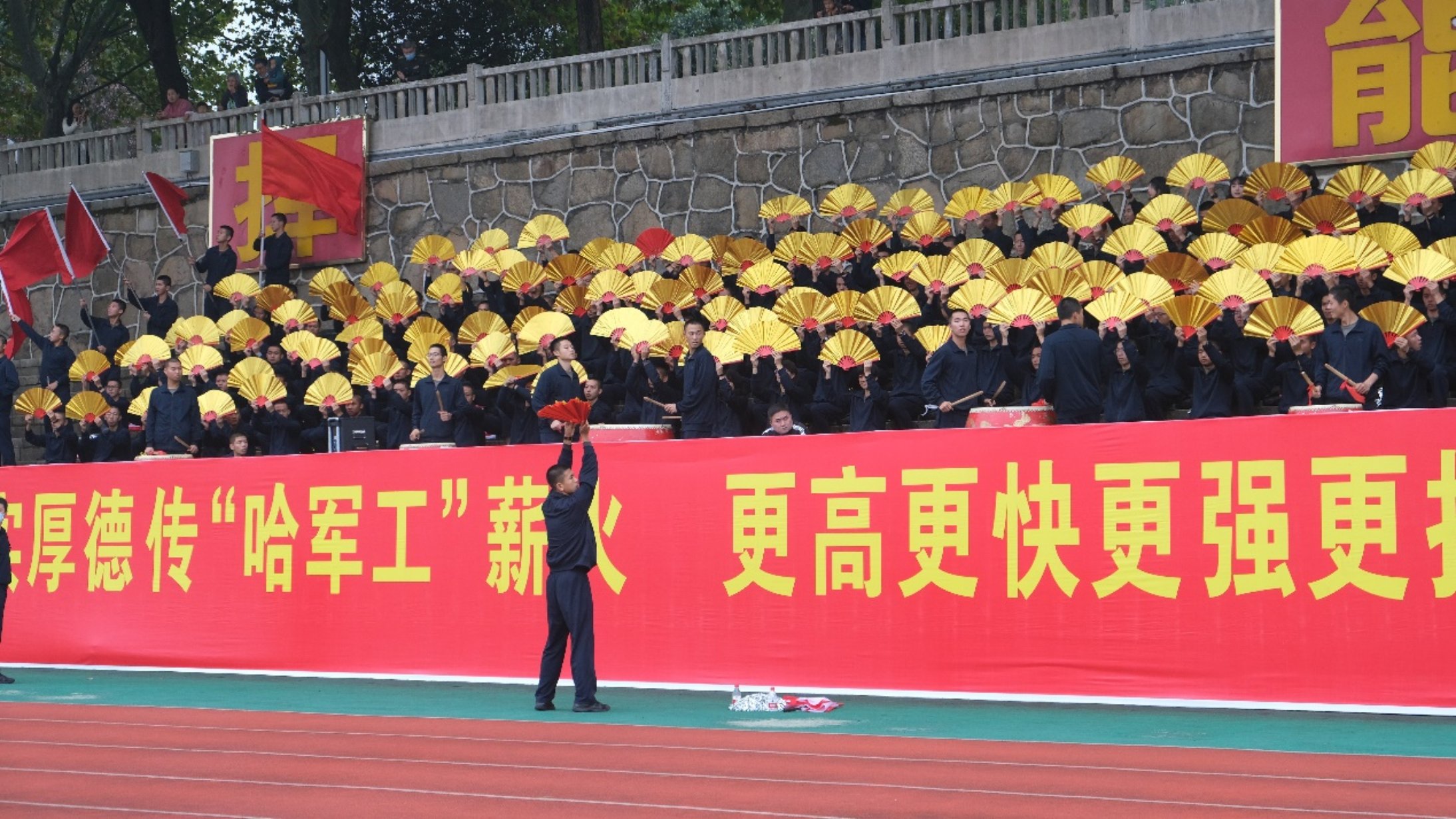 听,这鼓声阵阵;看,那红旗飘扬;感,这呼号震响。随着旗手的跑动,鲜艳的红旗衬托着艳阳,勾勒出这属于运动员们拼搏的天空。红花朵朵开放,红浪此起彼伏,红扇阵阵摇荡似波浪,似海潮,在这片红色的大海中有昂扬之斗志,有青春之活力,更有必胜之决心。