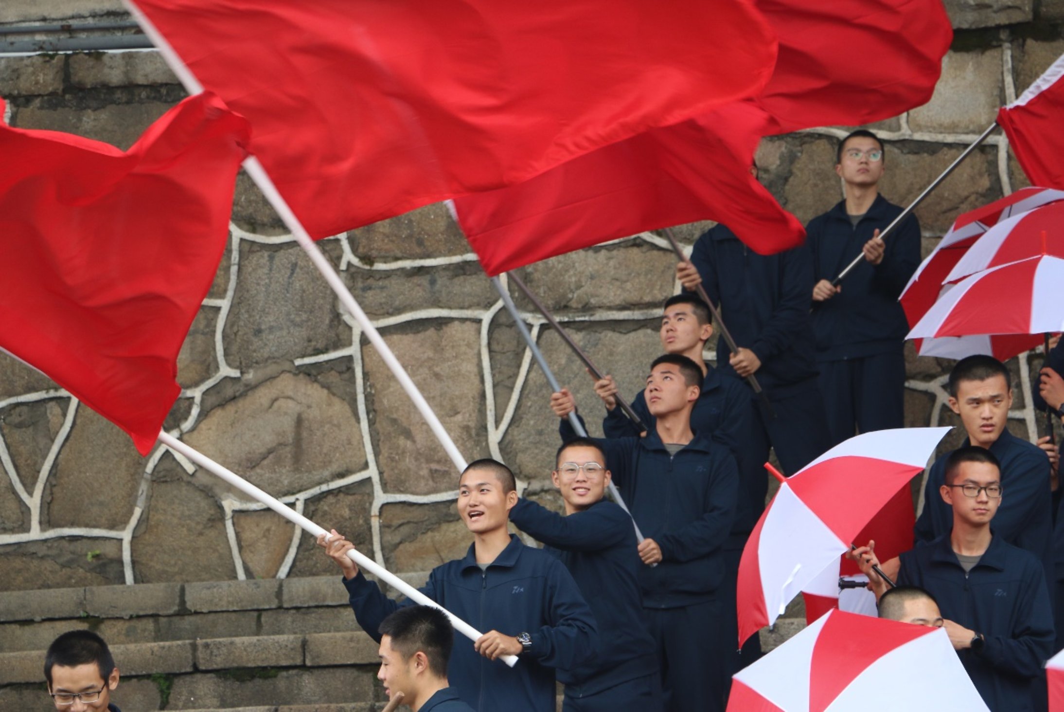 咚—咚—咚”气势磅礴的鼓声响彻云霄,伴随着嘹亮的口号,气象海洋学院啦啦队再一次惊艳亮相。该学院啦啦队由2021级气象海洋专业学员组成, “上场一分钟,干足六十秒”,在今天现场上,他们身着深蓝体能服,挥舞着火红的扇子,以洋溢的激情为场上的健儿们呐喊助威。
