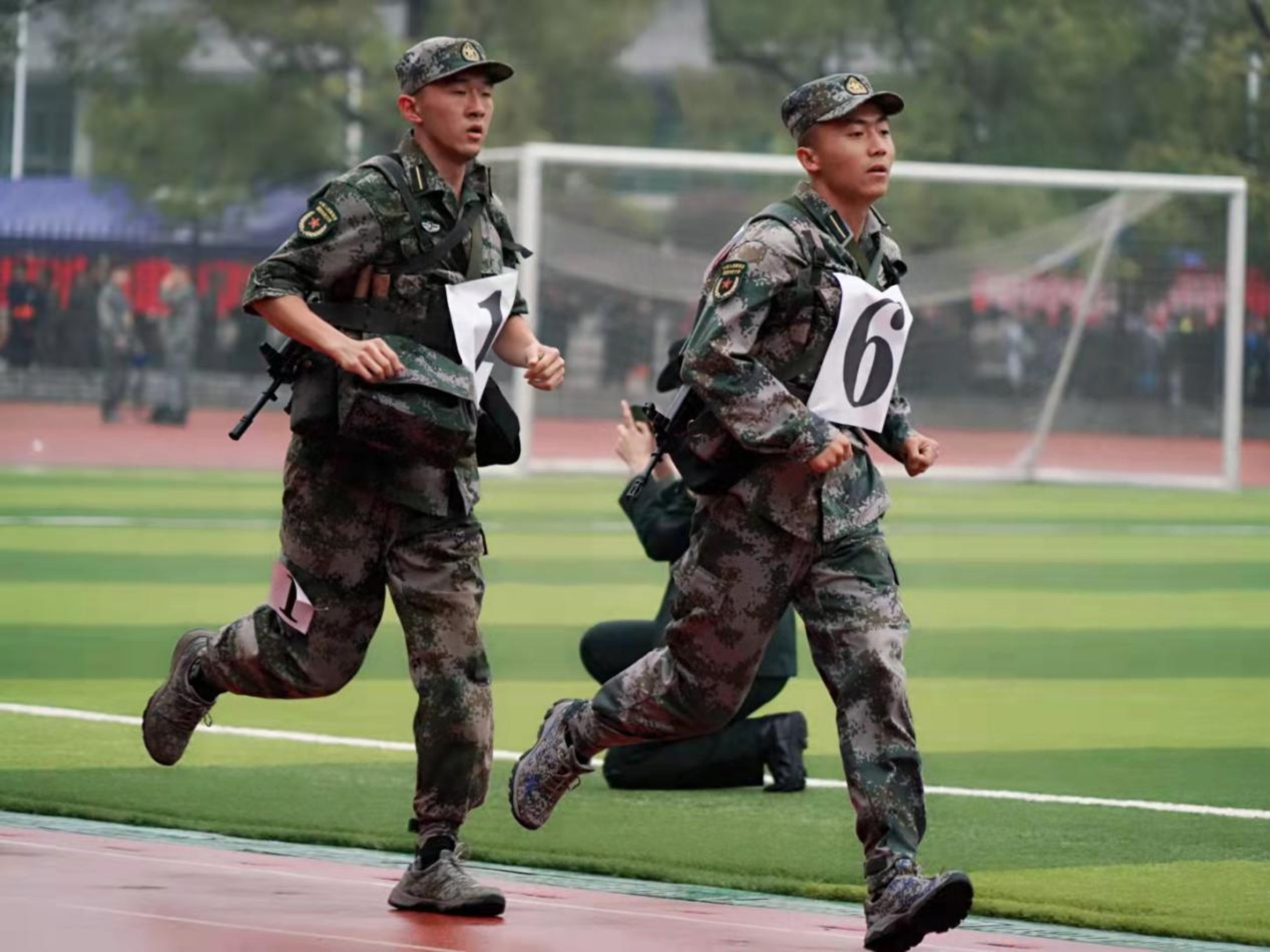 虽然天空中飘着细雨,但参赛队员们心中热血沸腾。刚刚结束的国防科技大学第50届军事体育运动会男子学员A组3000米武装越野决赛中,来自军事基础教育学院的黎富生摘得桂冠。比赛中选手们全副武装,势若惊鸿,一头跃进3000米的跑道。前路有许多阻挡,但对他们而言,再大的困难也能克服,因为他们满腔热血,志在夺魁,向着最后的终点发起冲锋!
