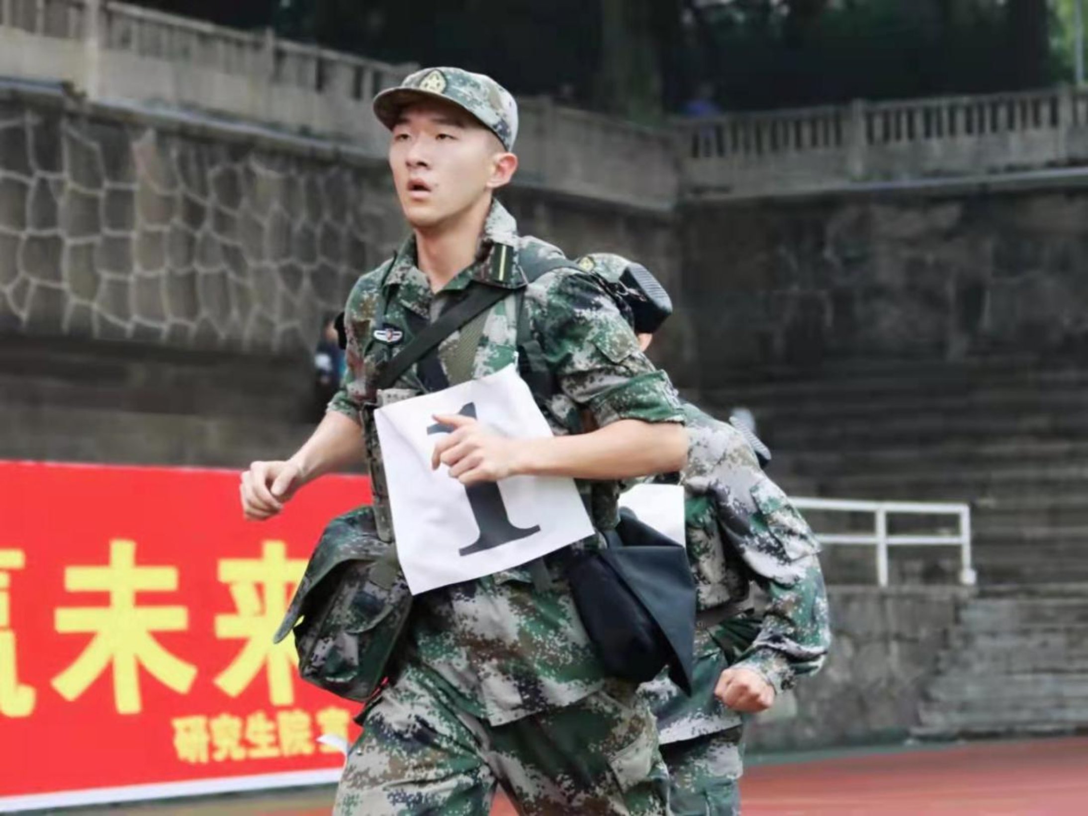 优异的表现背的后是平时辛苦的付出,武装三公里训练是最考验人意志、难度最大的训练,选手们一步一个脚印,常常练到双腿酸软,一切都是为了胜利!“苦不苦,想想红军长征两万五,累不累,想想革命老前辈”。他常以此激励自己:这不正是我们英勇顽强的解放军?每当坚持不下去时,他总在心里告诉自己:“不,我不能倒!”、“不,我还能行!”为了你的身后,你怎能倒下,你又怎么愿意倒下?目光所至皆是希望,每一步都是交给人民交给党的答卷!每一次挥臂都是兑现无数个日月的诺言。刻苦训练便是为了最后时刻,便是为了赛场上的冲锋。