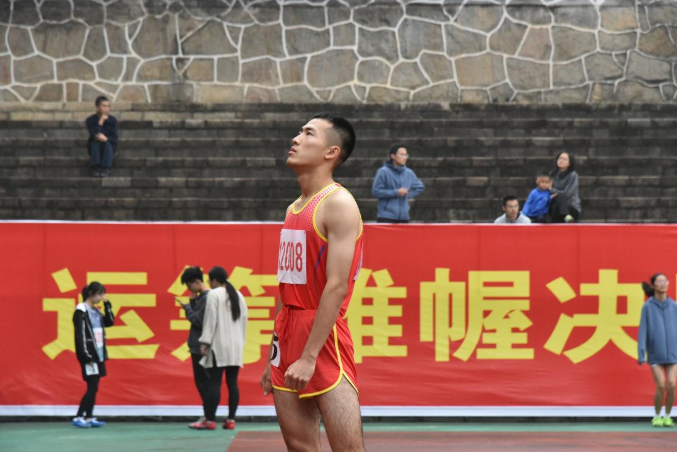 李思红,有着微卷的黑发的帅小伙,在400米场上是脱缰的骏马,一圈冲下来,大有势利破竹之势。一直处于领跑者,他的实力不容小觑,全程冲刺的爆发力与耐力的融合,将自己化身为了流星,一往无前,无人匹敌。