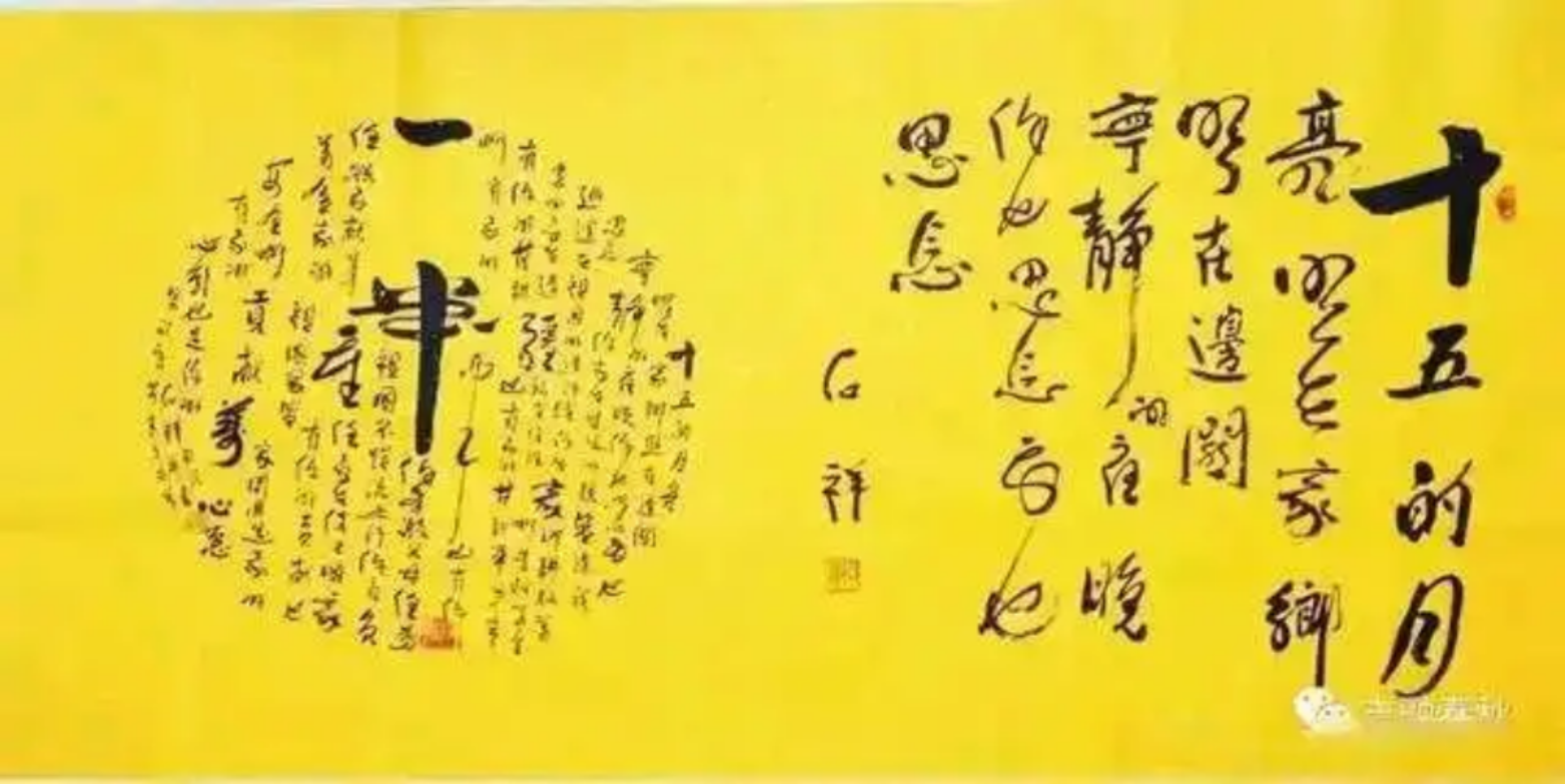 石祥是个多面手,涉猎颇为广泛。1983年他参加了大型音乐舞蹈史诗《中国革命之歌》创作活动,撰写文学脚本和解说词,并创作歌词《春风春雨》。此外,还为“802”军事演习、建国35周年国庆大阅兵等重大任务活动撰写解说词,为《钢铁长城》《世纪大阅兵》《一代精兵》等纪录片、专题片撰写脚本。他每次受领任务,都会深入研究党史军史及地方史志、参演参阅部队的历史、军事要地的战略价值和时代背景,然后逐字推敲琢磨、反复征求意见,最后形成准确、鲜明、生动的文字,有兵味有战味,大气磅礴,具有史诗性、冲击力和震撼力。他上小学时就开始描红、临帖,书法本来就有一定基础,后来又重新捡起来,勤加研习。书法作品以自己的诗歌、歌词为主要内容,行书、草书、榜书尤佳,挥洒自如、墨韵生动、沉稳大气,诗书相得益彰,独具个人风格。2014年12月,他在云南省昆明市举办“石祥诗词书法作品展”,以义卖的形式筹集善款近百万元,援建乌蒙山下、金沙江畔的一所希望小学,并题名“月亮小学”。2015年9月,他又将48件书法作品捐赠家乡清河县教育基金会,用以筹措资金赞助贫困学生和生活困难的教职工。《十五的月亮》等书法作品,也常常作为石祥慰问边关哨所、舰队海岛、维和部队官兵和军嫂的礼品,寄赠数量多达两三千件。
