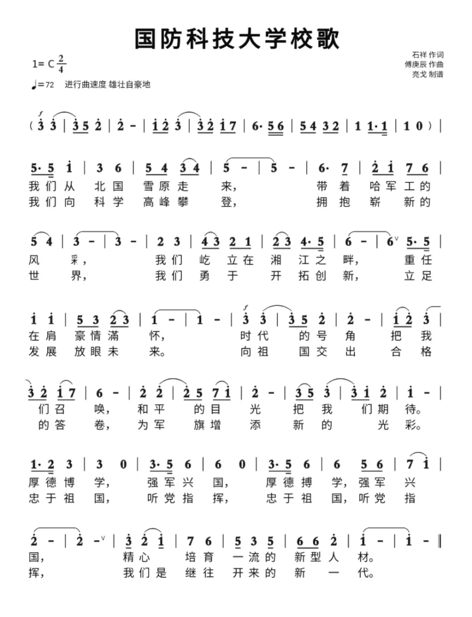 “我们从北国雪原走来,带着哈军工的风采……”每当雄壮自豪的歌声响起,国防科技大学的师生和校友一定会觉得倍感亲切。《国防科技大学校歌》的词作者是石祥,曾在上世纪八十年代作词《十五的月亮》,深受部队官兵和人民群众欢迎,广为传唱,他也因此被誉为“月亮词家”。