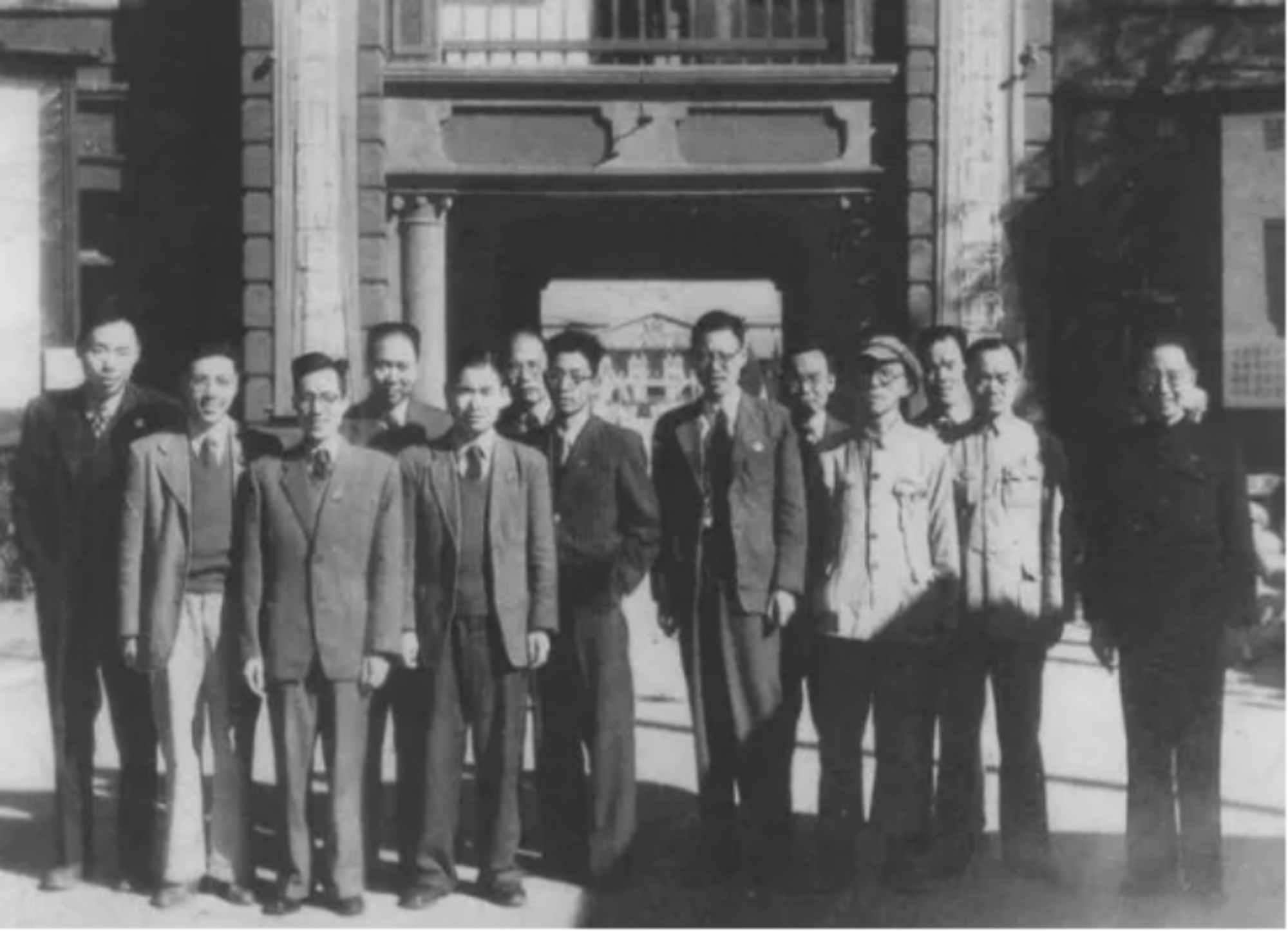 1949年9月,军事科学研究室成立。13位专家教授合影,左起:沈正功、周祖同、马明德、何乃民、钟以文、张述祖、金家骏、鲍廷钰、任新民、江潮西、岳劼毅、赵子立、张绿康。