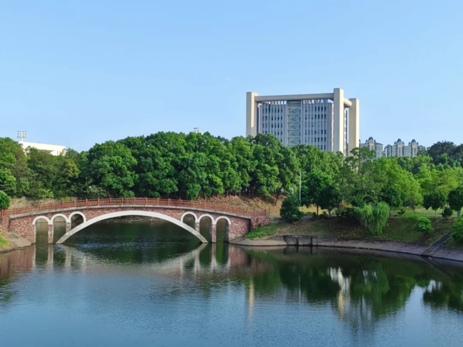 “南湖之光”楼前的碧绿湖水