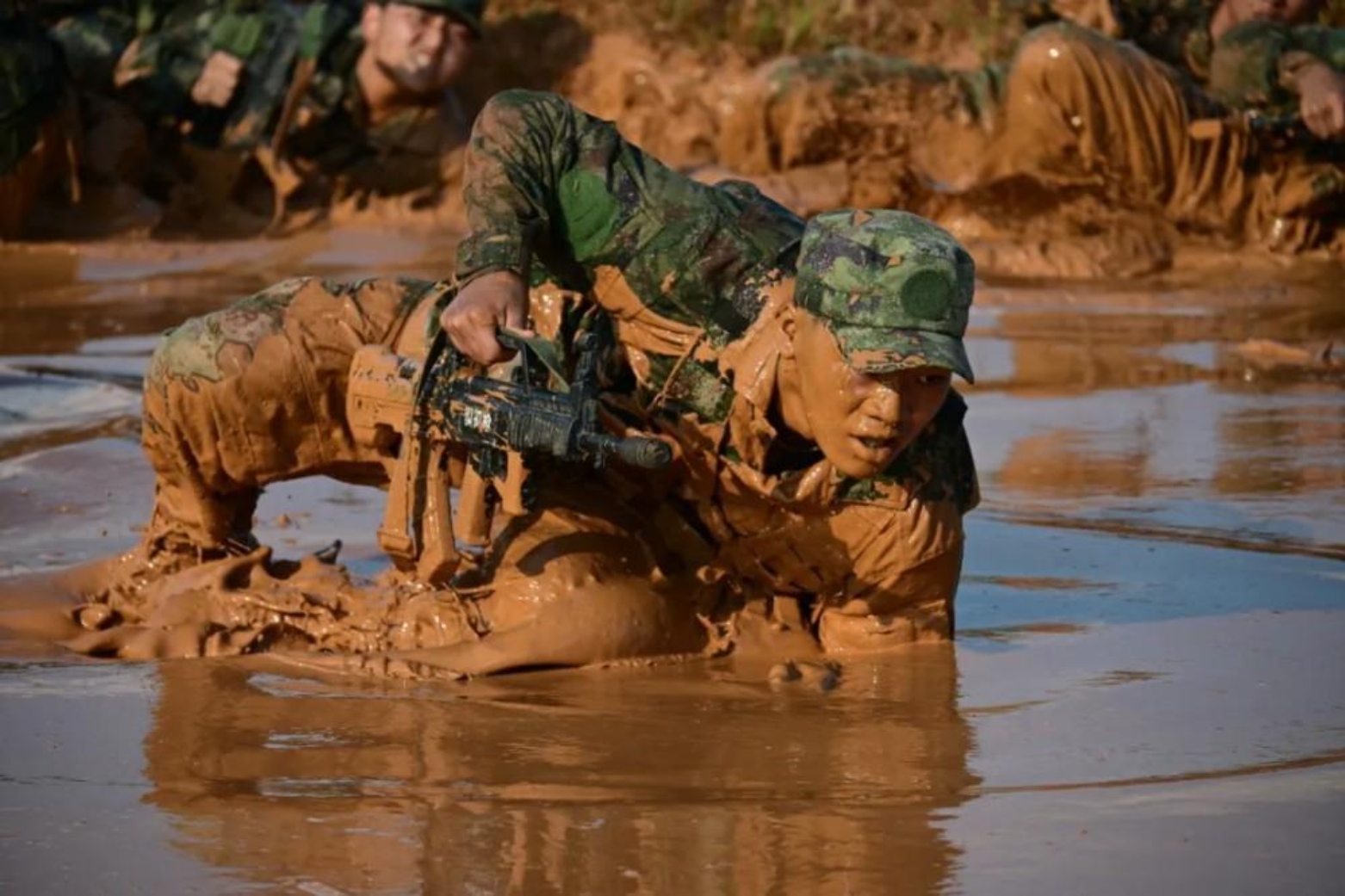 “前方道路遭敌破坏,无法通行!”面对层出不穷的突发情况,我方人员迅速查明迂回道路,采用匍匐前进的方式快速通过敌火力封控泥泞地段。