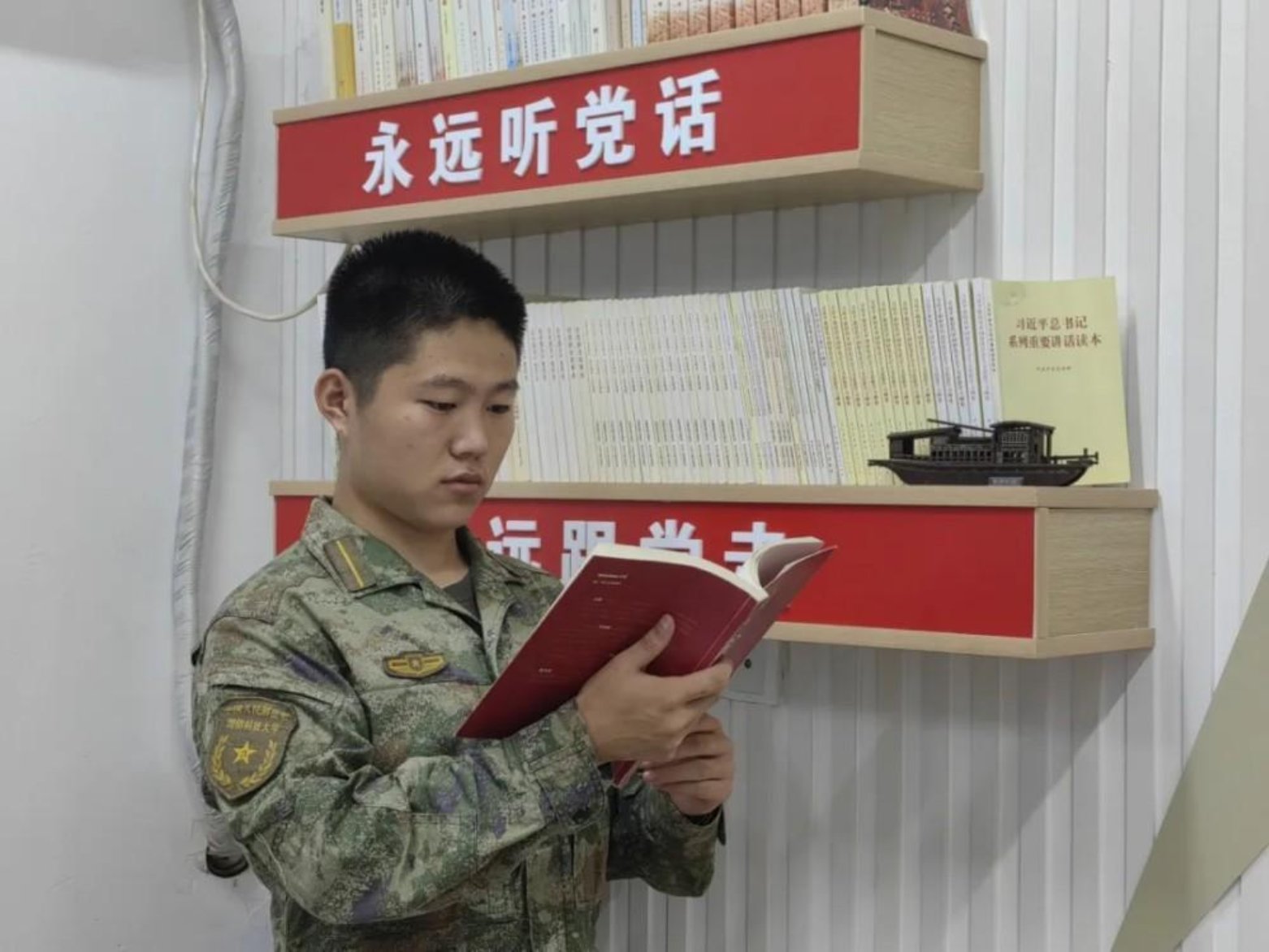 衡水三年,晨跑夜读磨就钢筋铁骨;科大三载,摸爬滚打铸就血性担当。曾以为极限是五点钟的晨曦,如今方知是全副武装后的冲锋号响——从三公里踉跄到五公里领跑;从专业懵懂到竞赛折桂,从课业吃力到名列前茅。这场蜕变,是汗水浇灌的成长,是血泪铸就的勋章。愿新战友们以奋斗为刃,在强军路上劈波斩浪,用迷彩青春书写无悔年华。