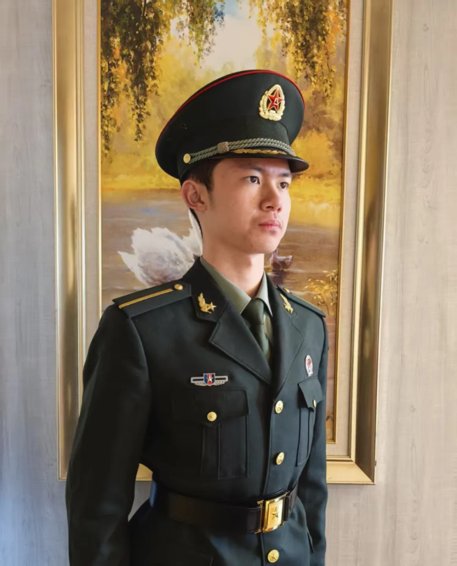 身着常服,精神昂扬