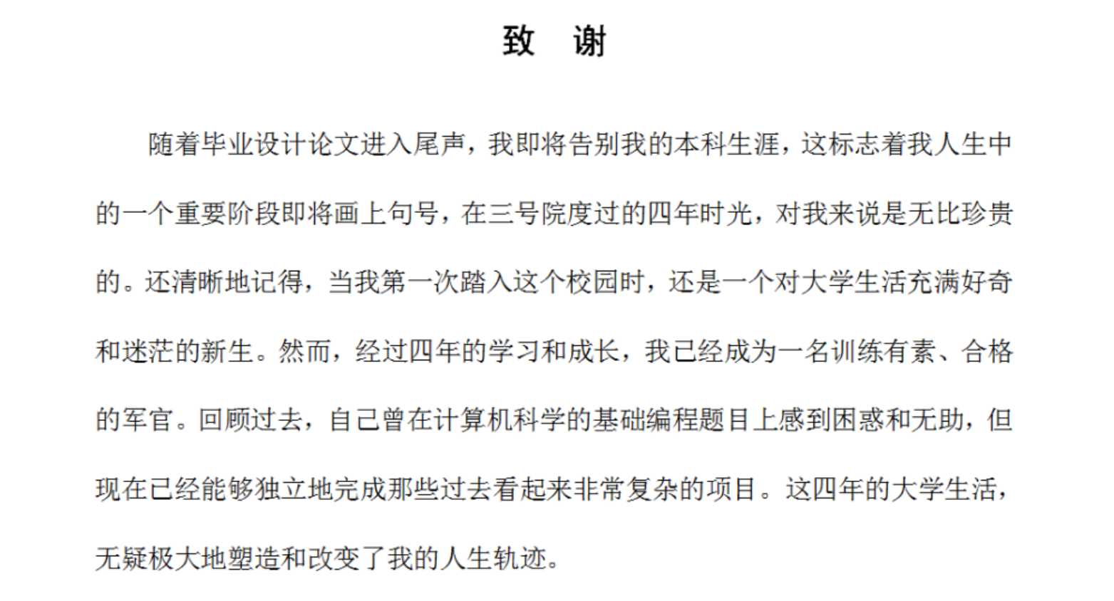 在毕业论文致谢里