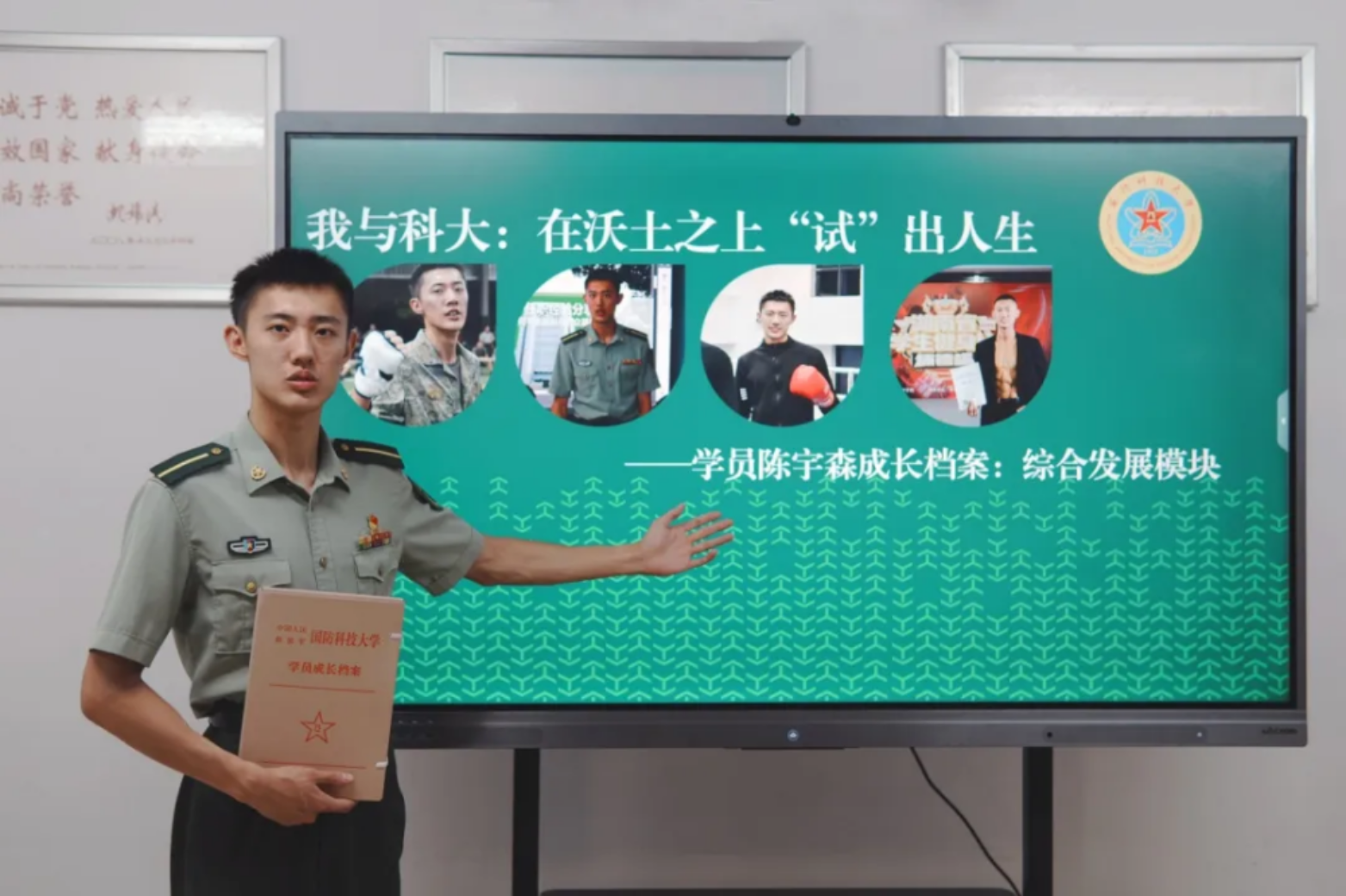 学员孙子洋的“成长档案”中,有一本新训期间的笔记本,扉页上,“一身戎装,正气凛然;一腔热血,不负家国”的字迹力透纸背,旁边用红笔圈住的“国防科技大学”校名已有些褪色。