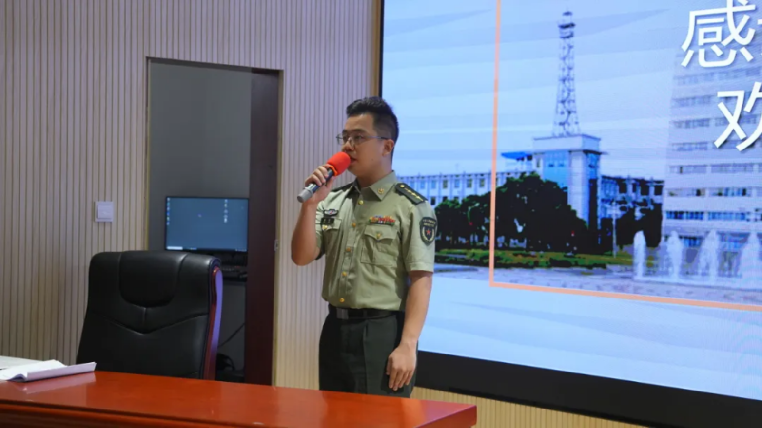 近日,由“高地”音乐创作室与研究生学术活动组织委员会联合主办的基层俱乐部骨干系列分享会,在一号院高地会堂音乐创作室举行。空天科学学院博士研究生、学校“高地”音乐创作室主任周首,以“十年追光·乐动风华:用音符谱写迷彩青春”为主题,结合自身求学经历与强军实践,分享军校生活,展现新时代军校学员的使命担当。学校政委陈国强现场聆听周首分享,并与学员共叙成长故事。