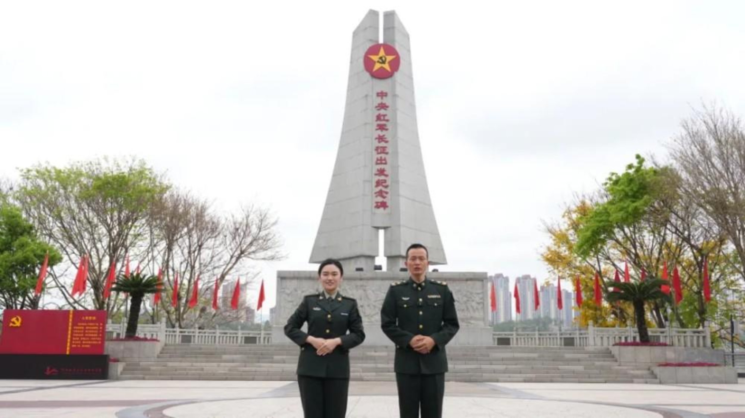在江西于都,设置了多处参观点位——中央红军长征出发纪念馆、中央红军长征出发纪念碑与东门渡口、江西于都车溪乡烈士遗孀段桂秀居所、江西于都祁禄山红军长征小道等,学校2名学员与部队5名官兵一边带大家参观,一边讲述可歌可泣的长征故事。