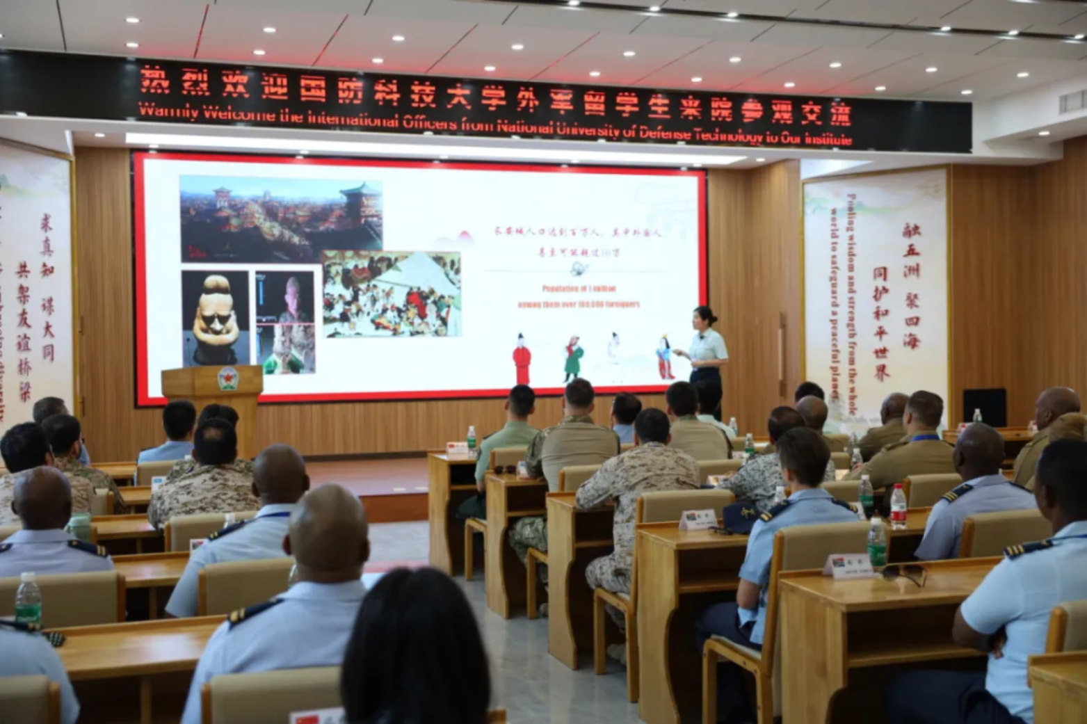 近日,国防科技大学组织“遇见丝路、感知中国”沉浸式研学活动。来自中亚、美洲、非洲等地50余名外军学员踏上丝路起点西安和革命圣地延安,共同探寻丝路起点的独特魅力,感悟革命圣地的红色基因。