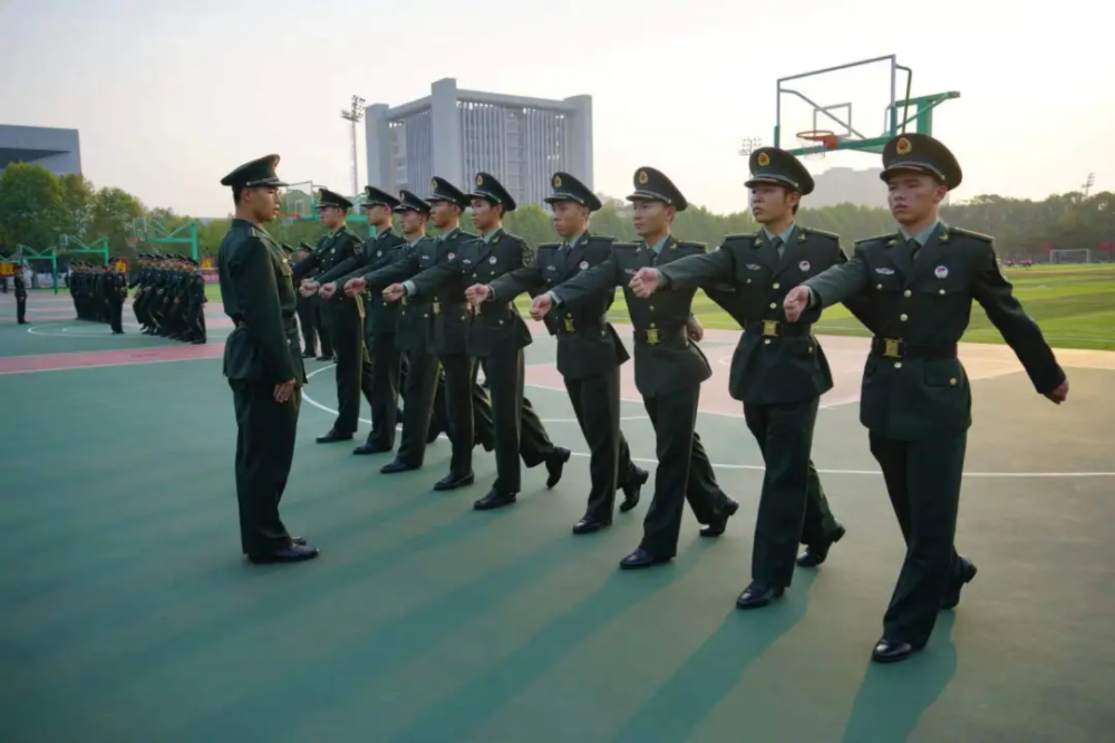 一丝不苟的齐步整齐划一