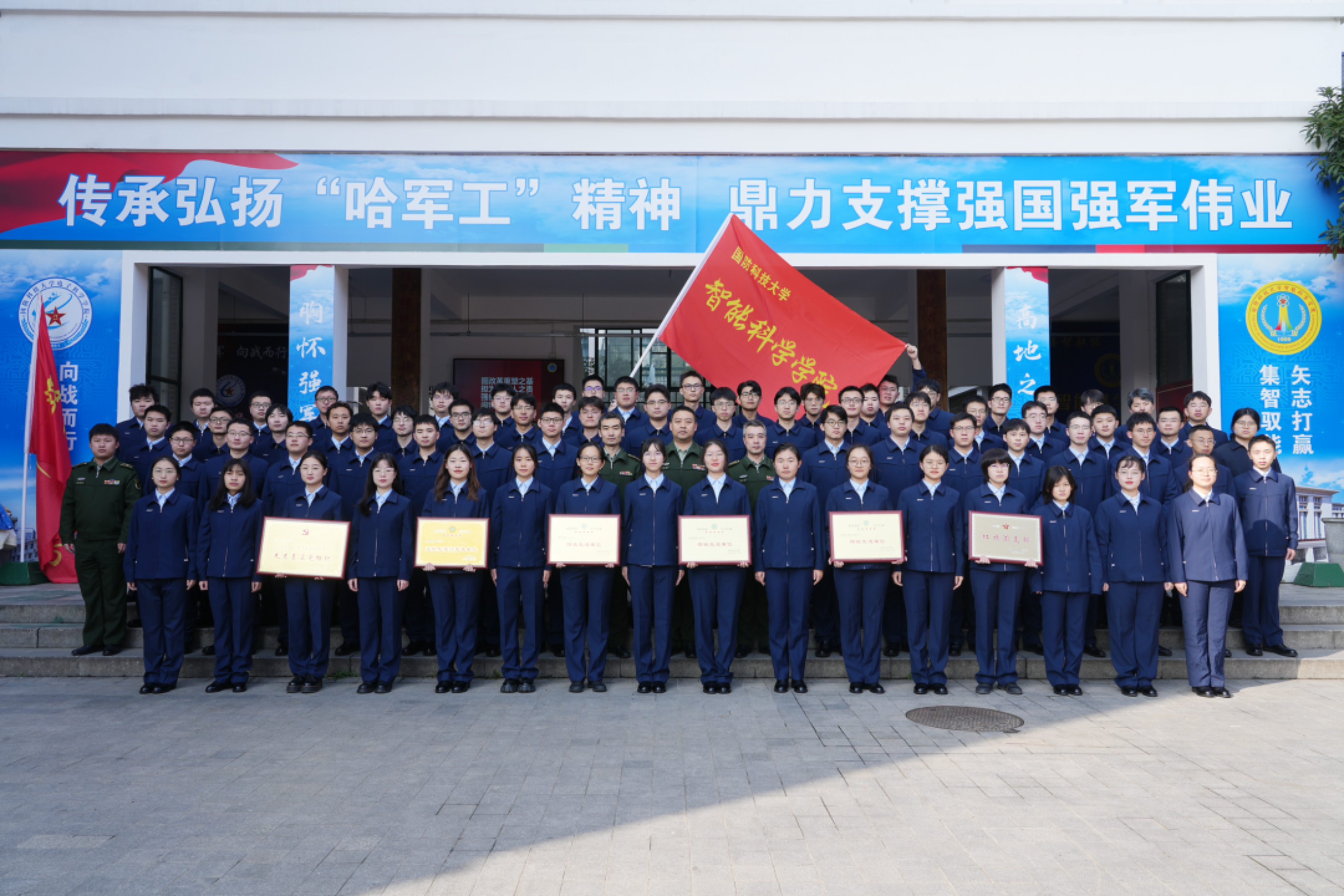国防科大2023年度颁奖典礼现场星光璀璨,气氛热烈。智能科学学院某学员队队长赵凌翔接过一块沉甸甸的奖牌——奋进一流突出贡献单位。 坐在台下观礼的学员们陷入了回忆:大学四年的点点滴滴犹如电影般在脑海里轮番播放,第一次参加“政教”、第一次和队干部谈心、第一次参加竞赛……四年的时间里,他们发生了一场与青春相遇的逐梦之旅——成长!