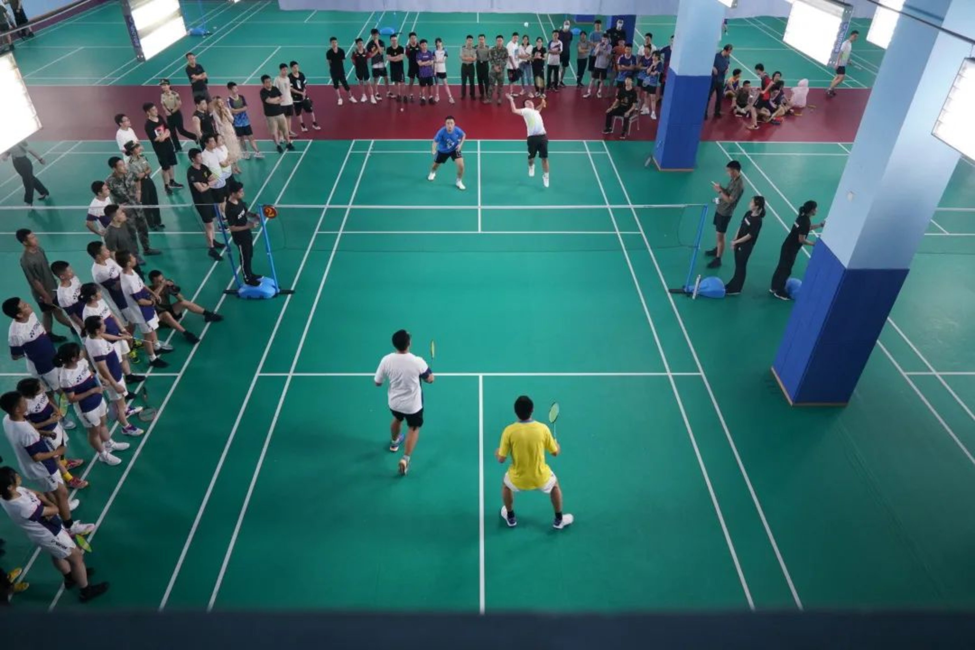 “干脆利落的扣杀,强劲有力的跳杀,猝不及防的网前扑杀……”6月19日,学校第51届军事体育运动会“奋进杯”羽毛球赛现场热烈,掌声雷动。