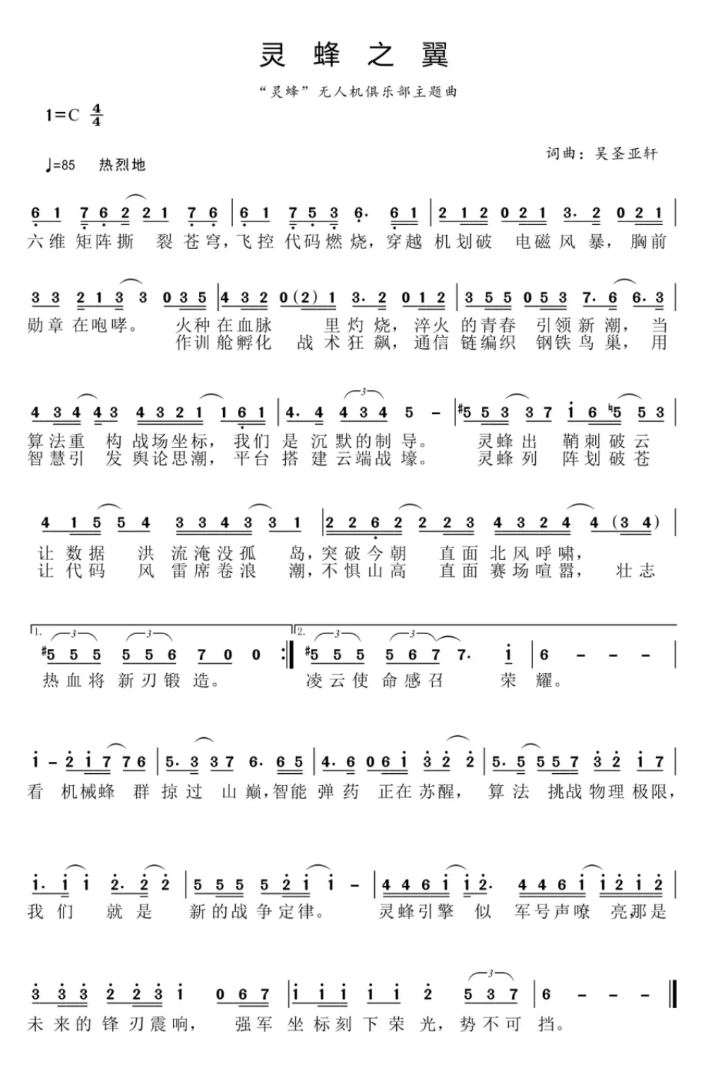 《灵蜂之翼》是国防科技大学“灵蜂”无人机俱乐部之歌,“灵蜂”无人机俱乐部由智能科学学院主责抓建,聚焦实战,突出创新,以“鹰击长空、览众山皆小;科技傲才、驭无人行者”为理念,致力于培养学员的科技创新能力和实践能力,提高学员为战而研的使命感和服务社会的责任感。
