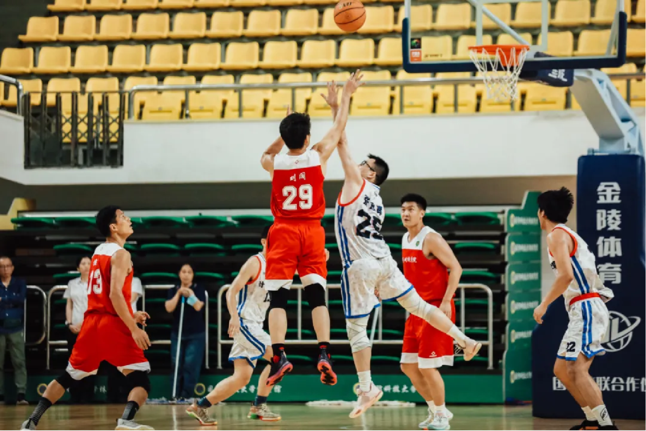 双方队员全力争夺球权