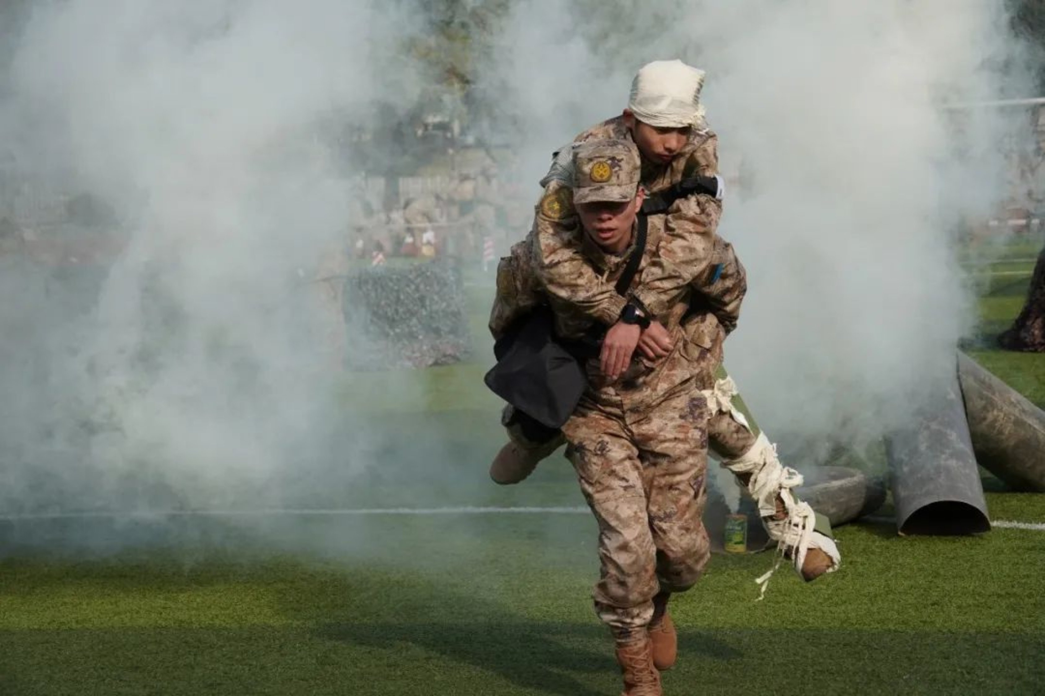 止血带、三角巾、卷式夹板在手中上下翻飞