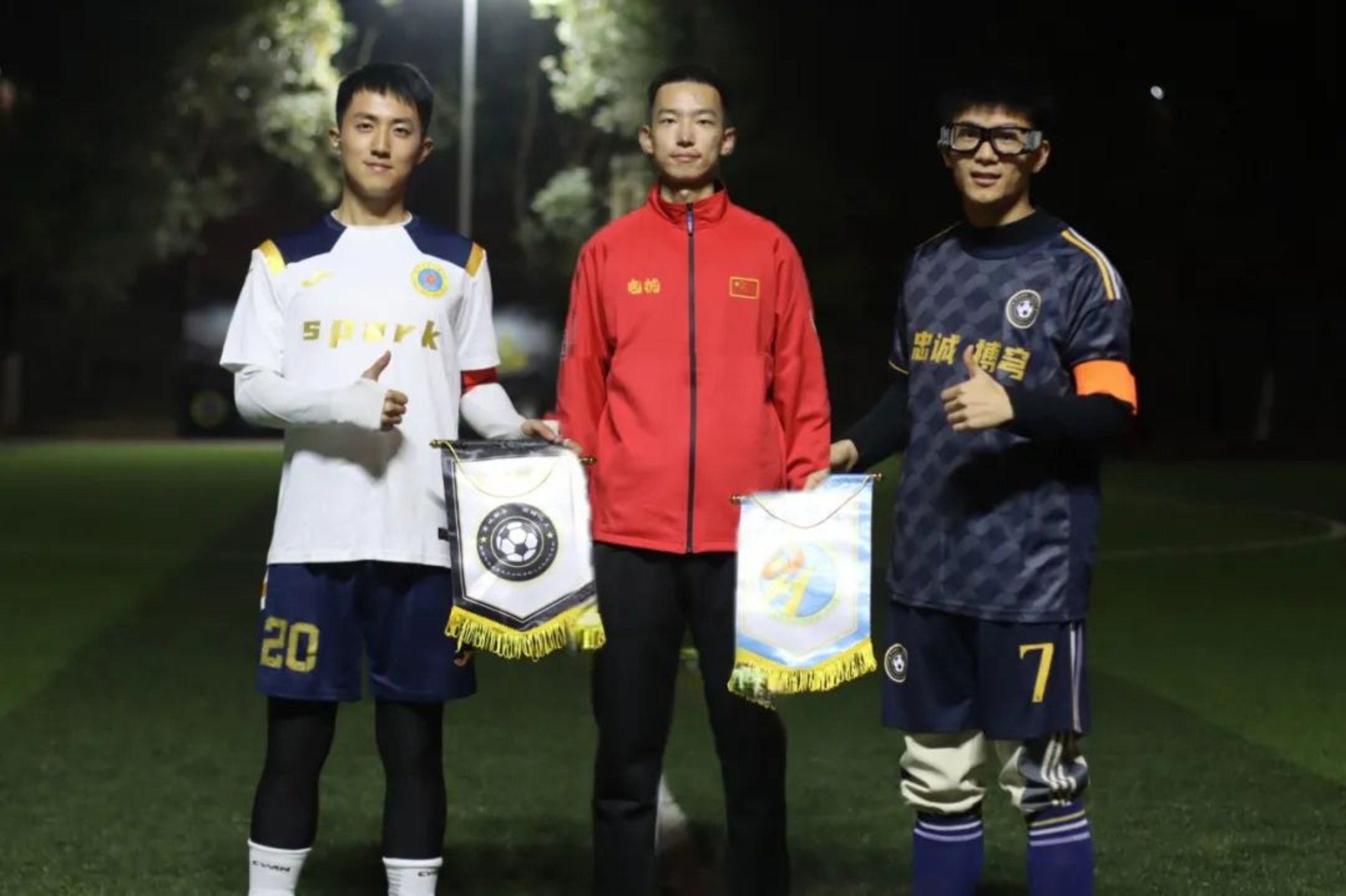 交换队旗,与裁判合影
