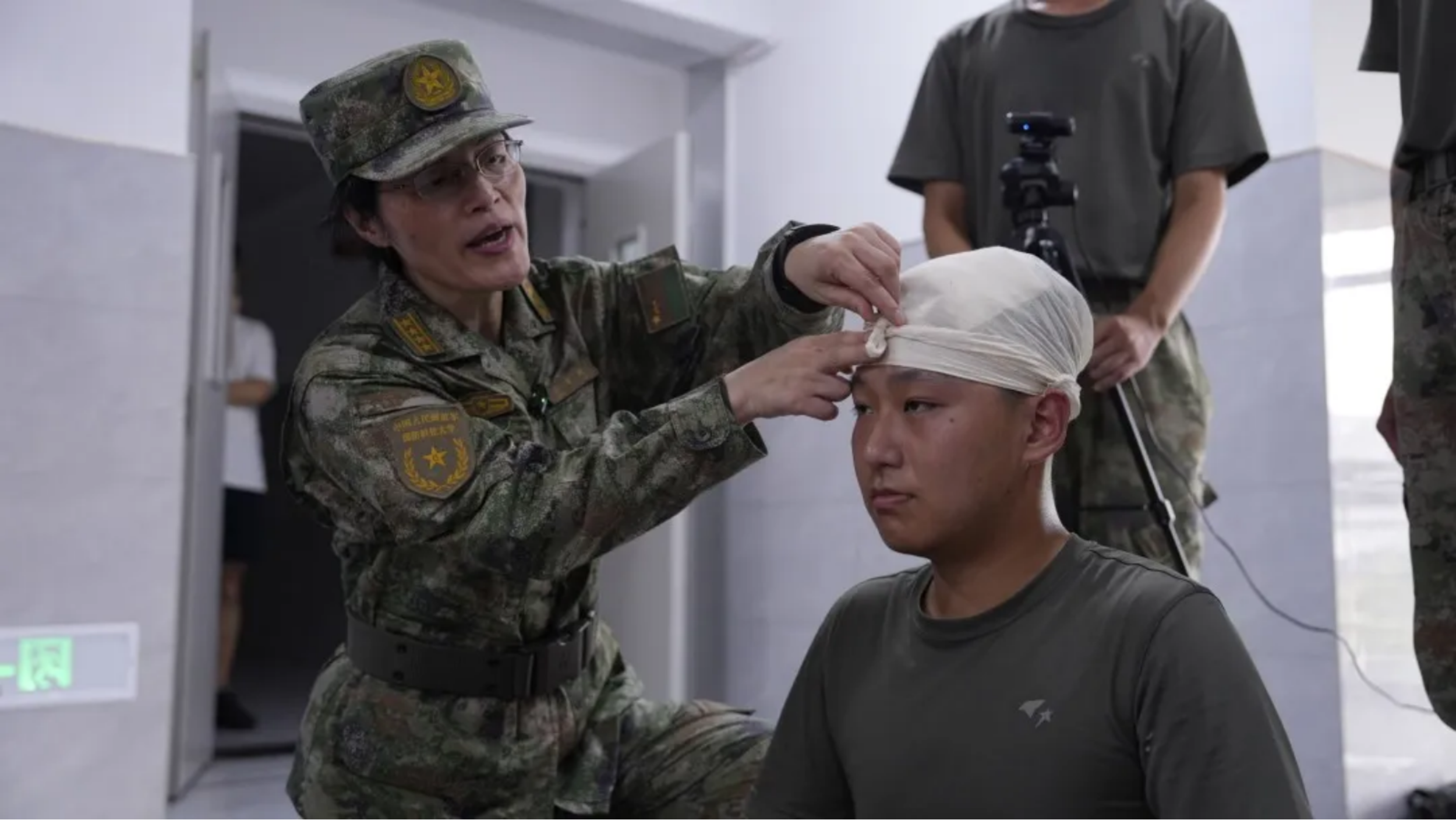 为同伴包扎“伤处”
