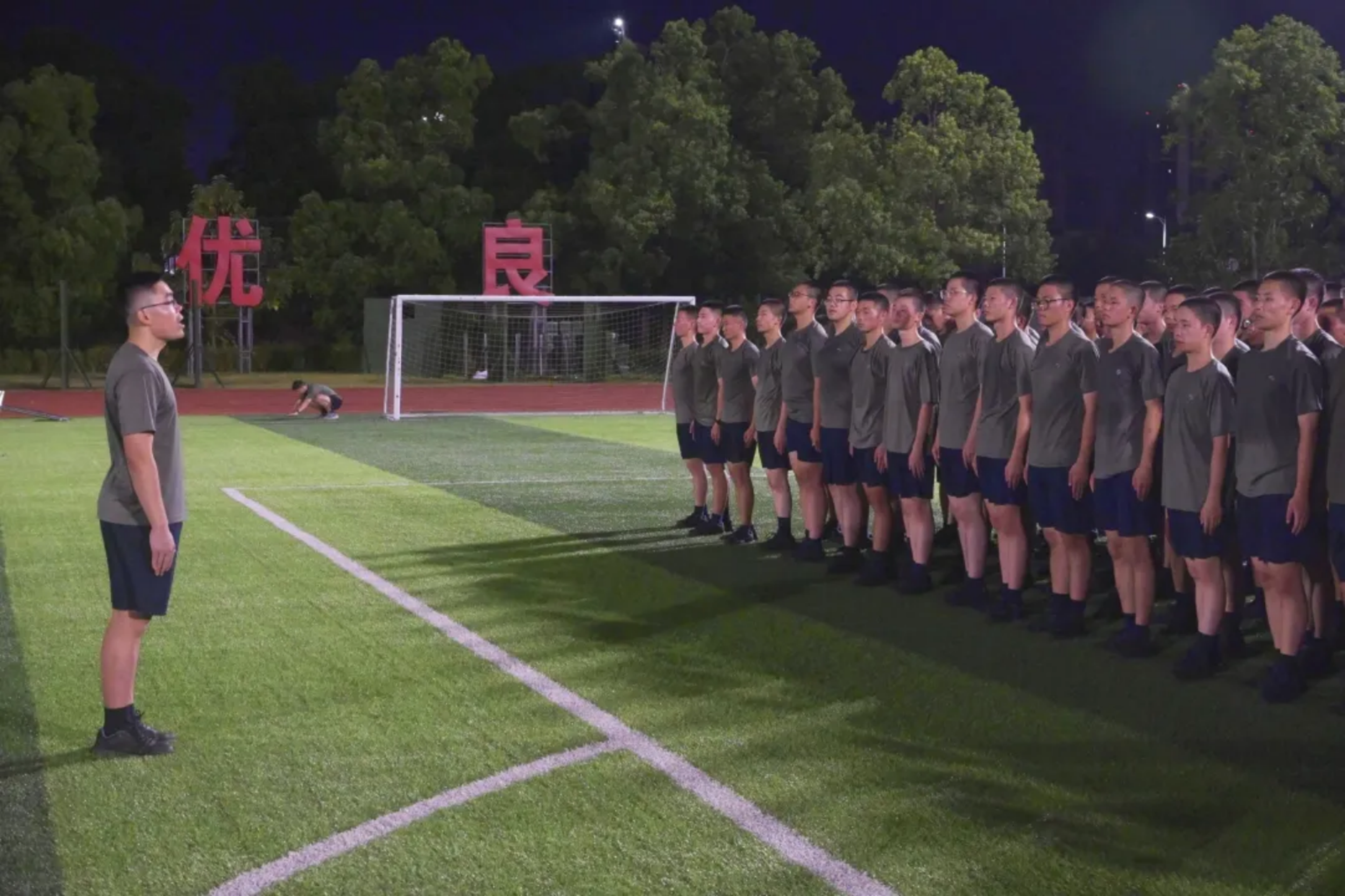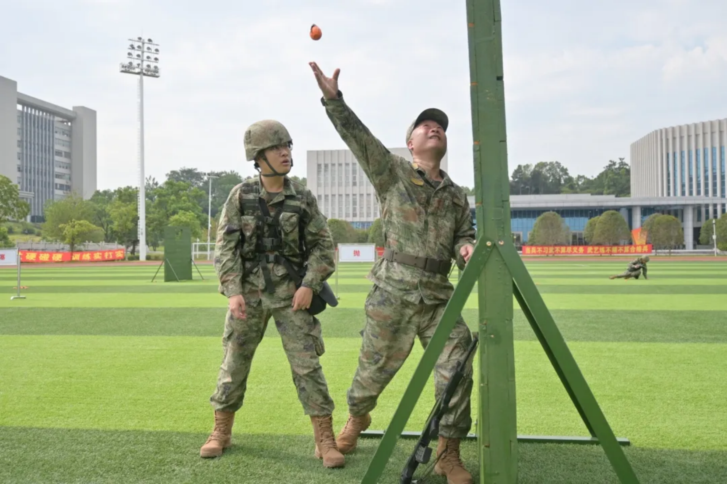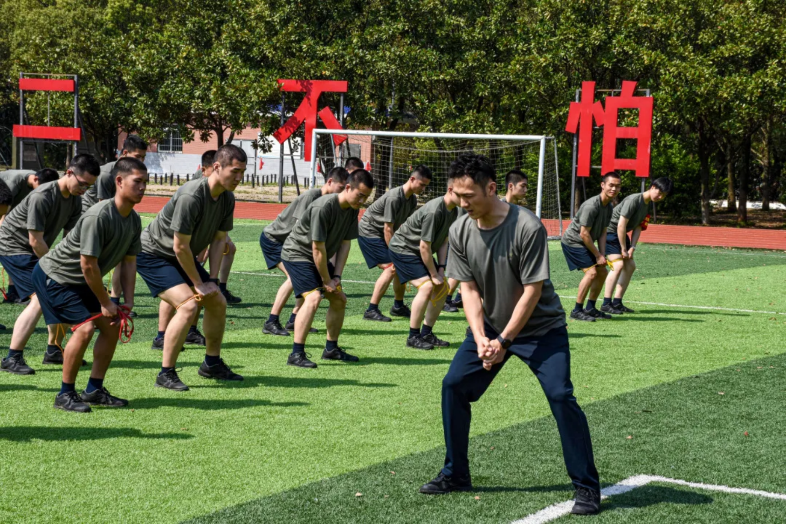 我已连续参加了三次带训任务。在这个充满激情的时代,每名官兵都是强军路上的奋斗者。新学员们,国防科技铸就强国之盾,军体训练锻造钢铁之躯。愿你们在汗水与磨砺中,成长为国家和军队的栋梁之才!