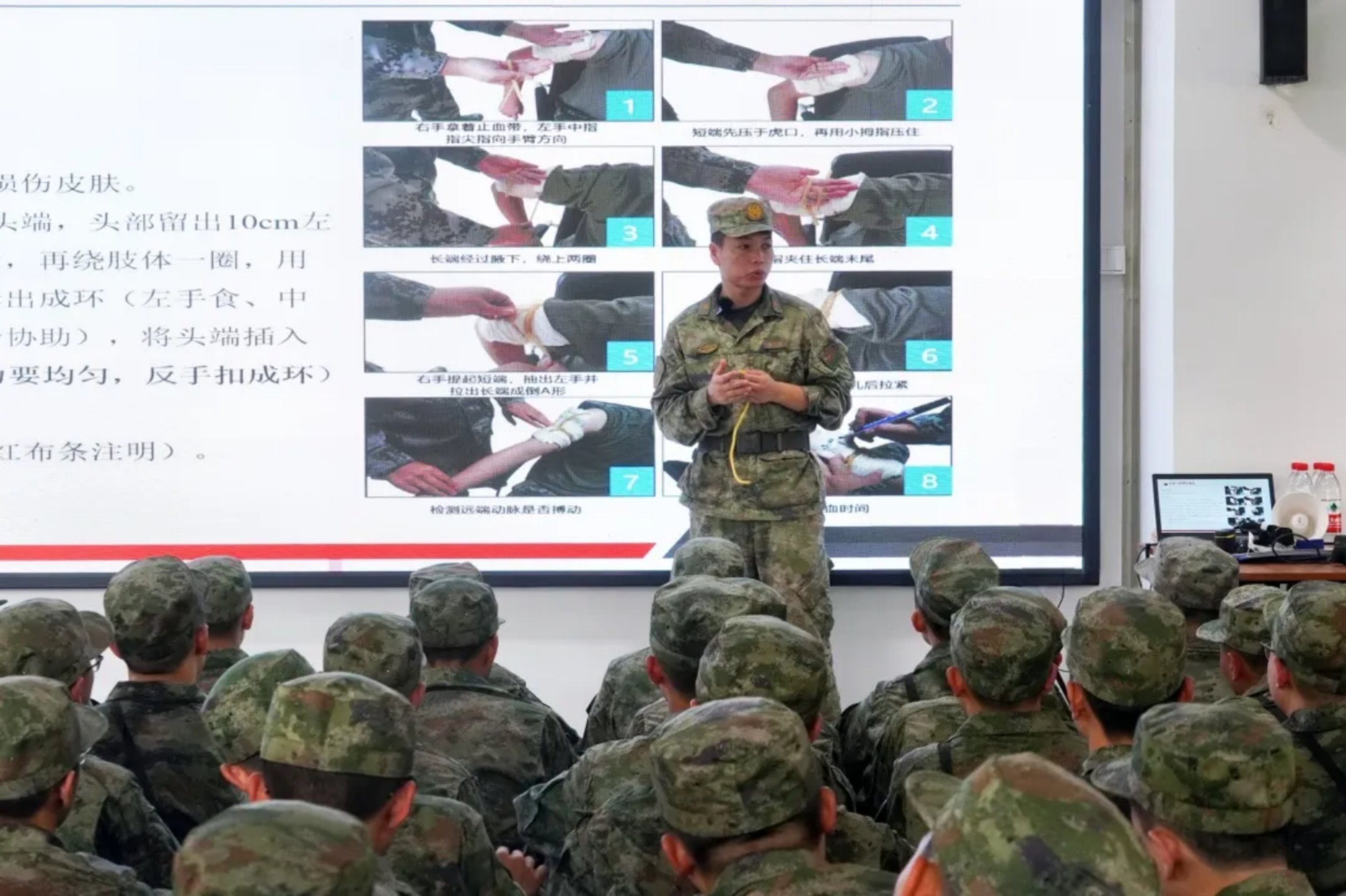 这是我带新训的第六年,作为《防护与急救》这门新训课程的教员,我深感责任重大。个别学员不适应新训的快节奏,我便精讲多练,放宽自行体会练习时间,让学员大脑尽可能恢复自主运转。我也经常跟学员们一起探讨教学内容跟战场情况的对接,帮助新学员打牢军事素质基础,培养优良过硬作风。