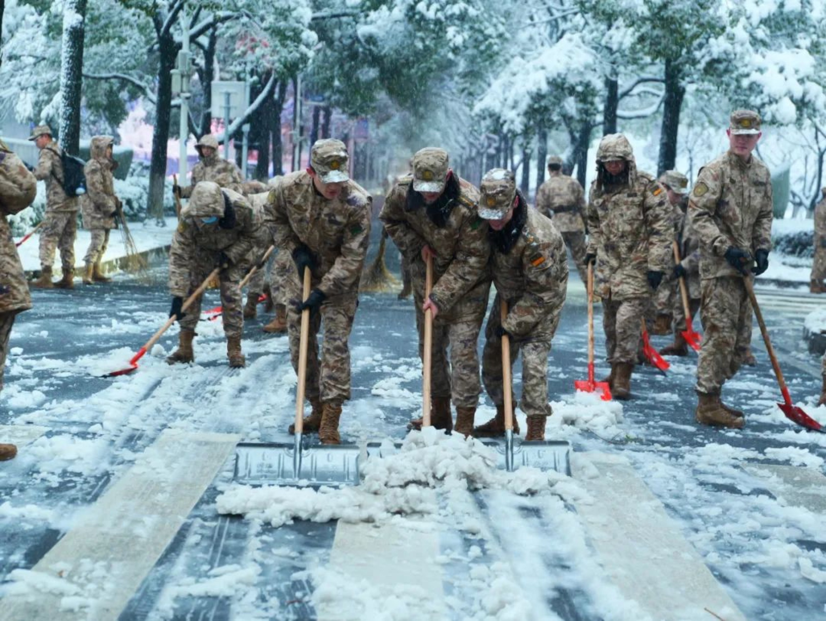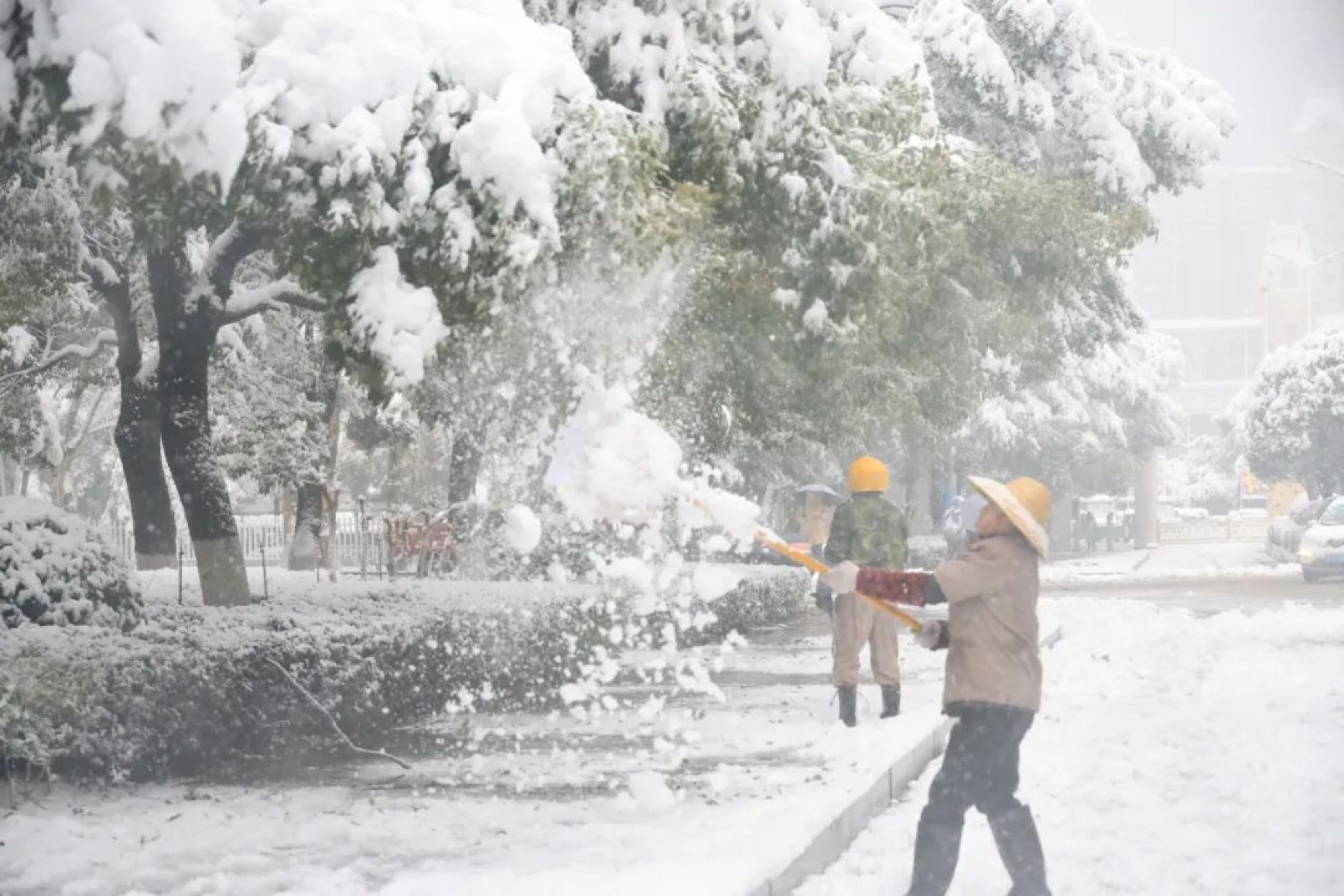 还有一群人冒着风雪