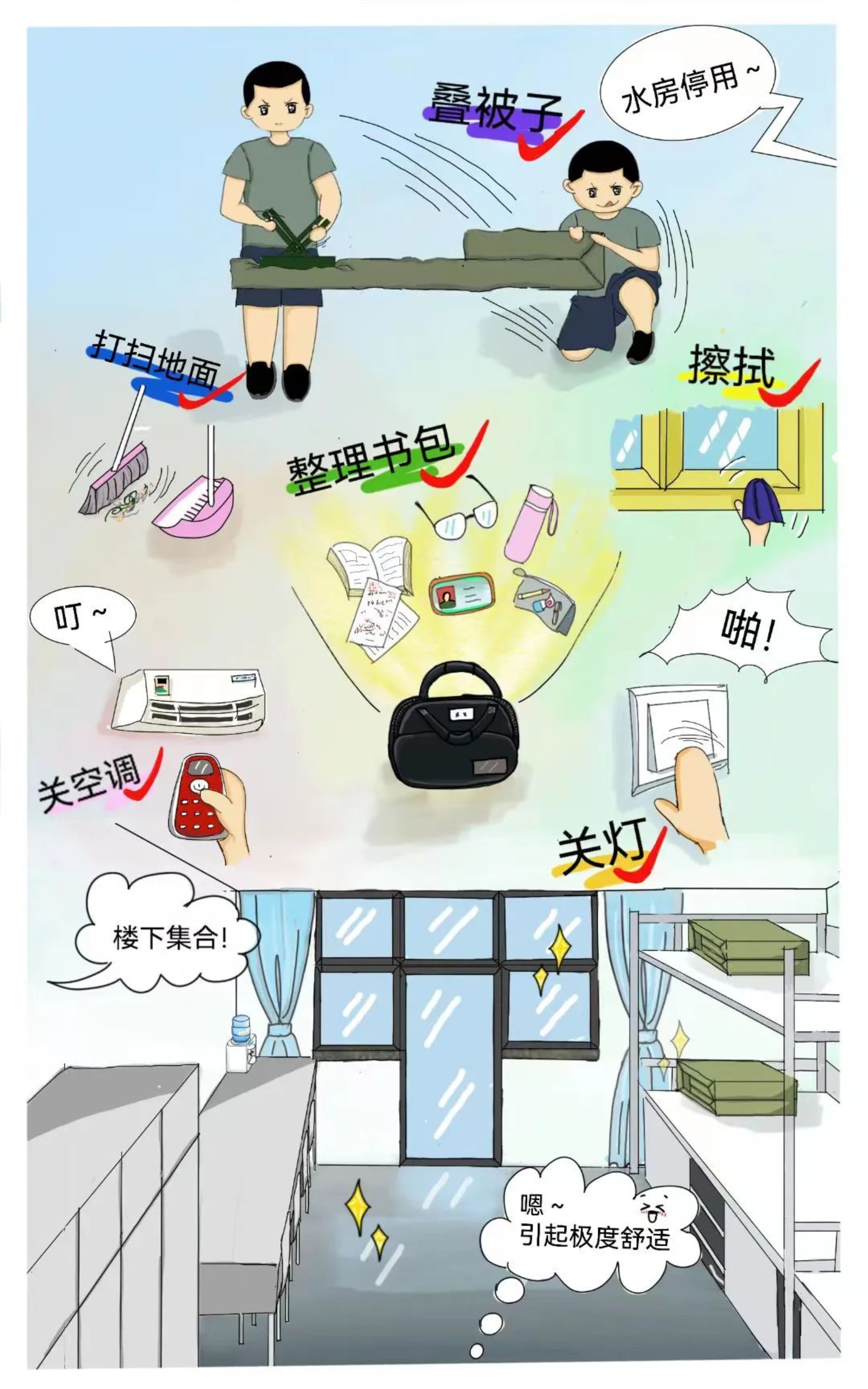 叠被子捋床单