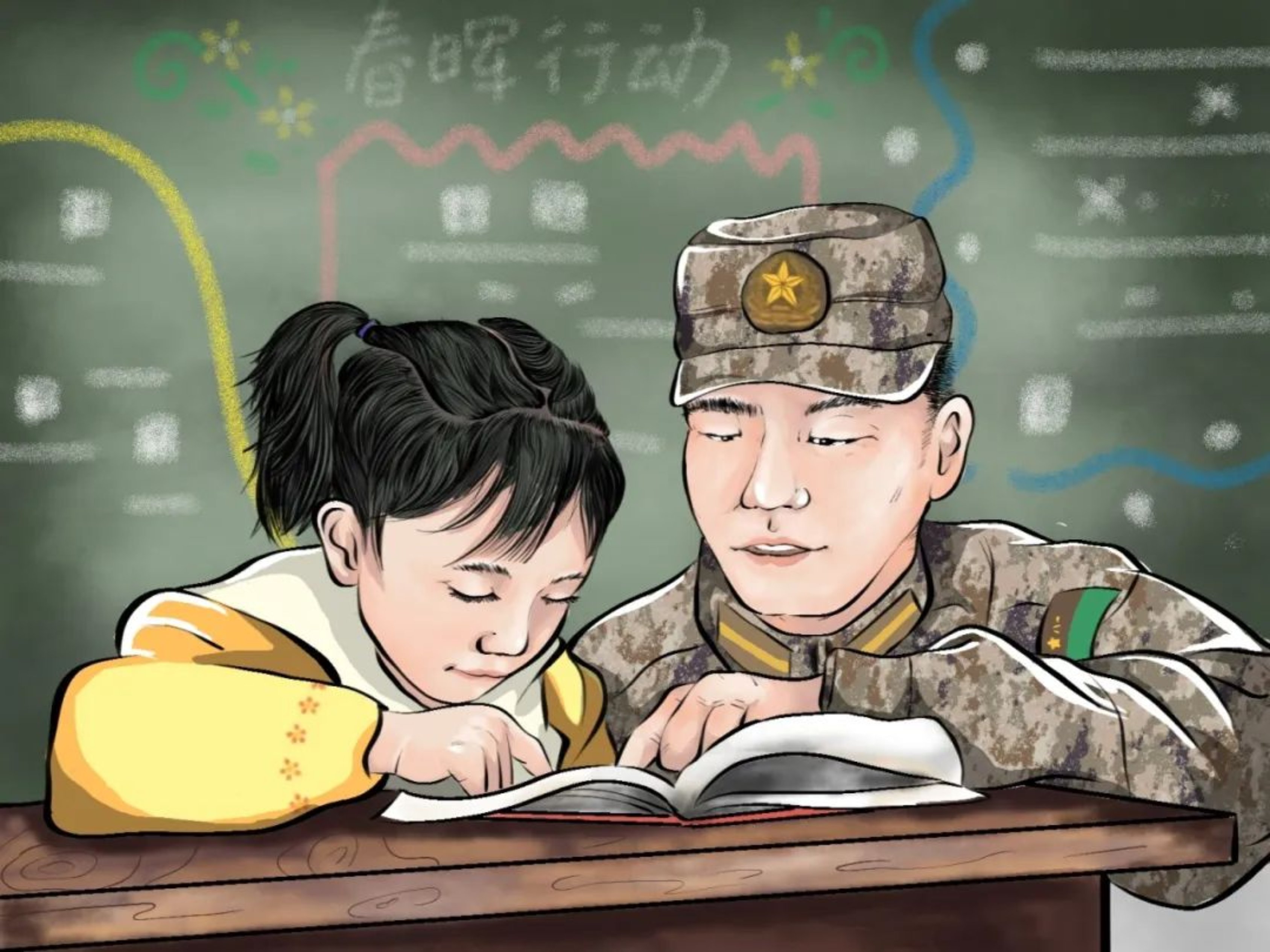 今年,我随队到贵州山区参加“春晖”扶贫共建行动。国防教育的课堂上,没有课本和教材,孩子们仍听得格外专注。授课结束后,孩子们纷纷围上来,用稚嫩的声音和我交流理解与感受。"还会再见吗?”挥手离别之际,一个小女孩高声喊道。“会的,我在军营等你!”那一刻,我感到红色的种子已在他们心中扎根发芽。——学员陈怡乔